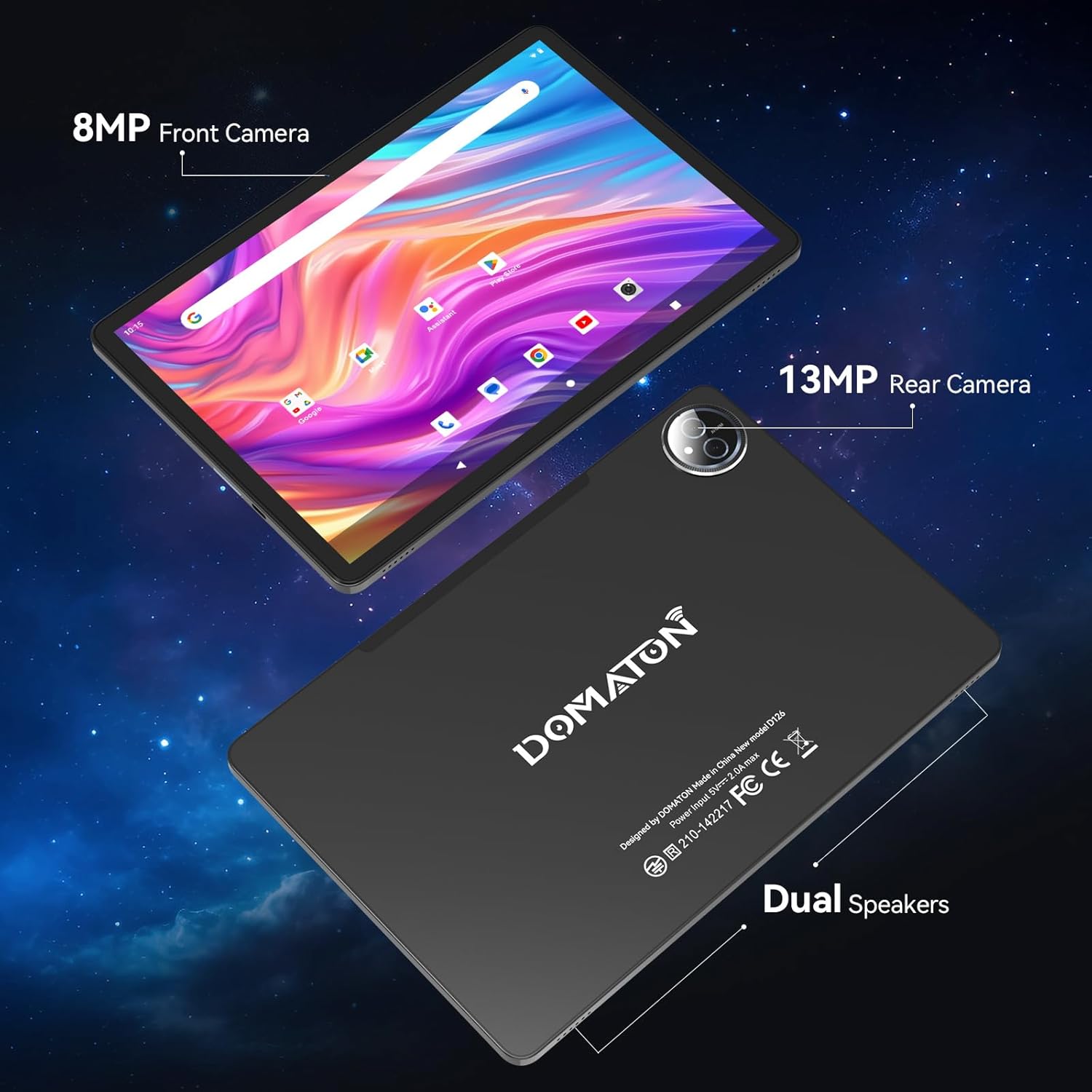 [High-Performance Android Tablet with Mediatek 8-Core CPU at 2.0GHz, GMS Certification ] The DOMATON 11 inch tablet is equipped with the Mediatek 8786 octa-core processor, consisting of A75 high-performance cores and A55 energy-efficient cores, delivering performance. Additionally, it uses the IMG BXM-4 graphics processor to deliver an excellent gaming experience. It has passed GMS certification, allowing you to freely download and install millions of apps from the App Store.