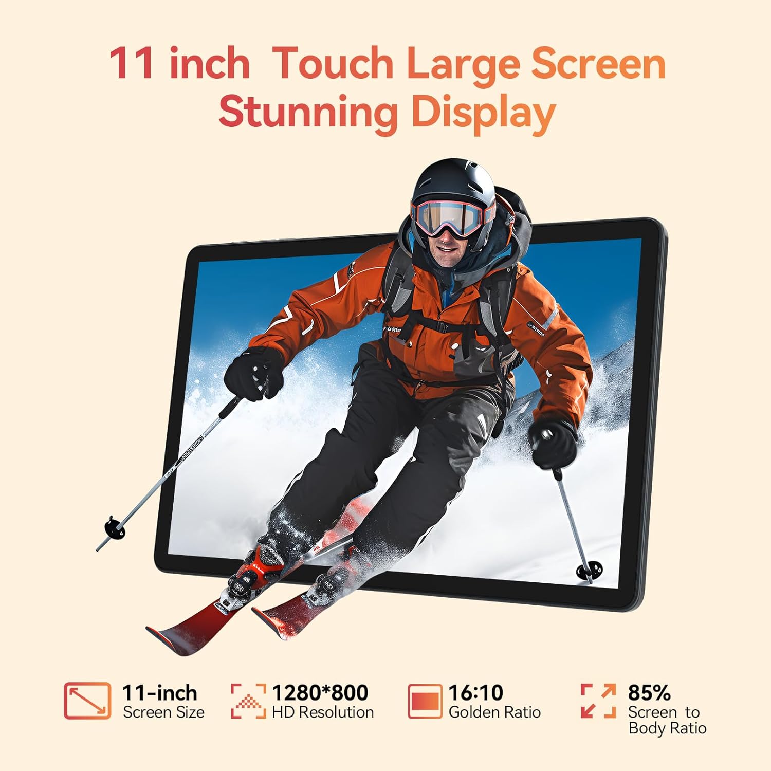 【Long-Lasting 7000mAh Battery for All-Day Use】This 11-inch tablet powered by a high-capacity 7000mAh battery, this tablet provides up to 7-8 hours of continuous use on a single charge (actual usage may vary). Recharging is quick and convenient via the modern Type-C port. This reliable battery life makes it the perfect companion for extended activities like commuting, traveling, reading, watching movies, binge-watching your favorite shows, or listening to music.