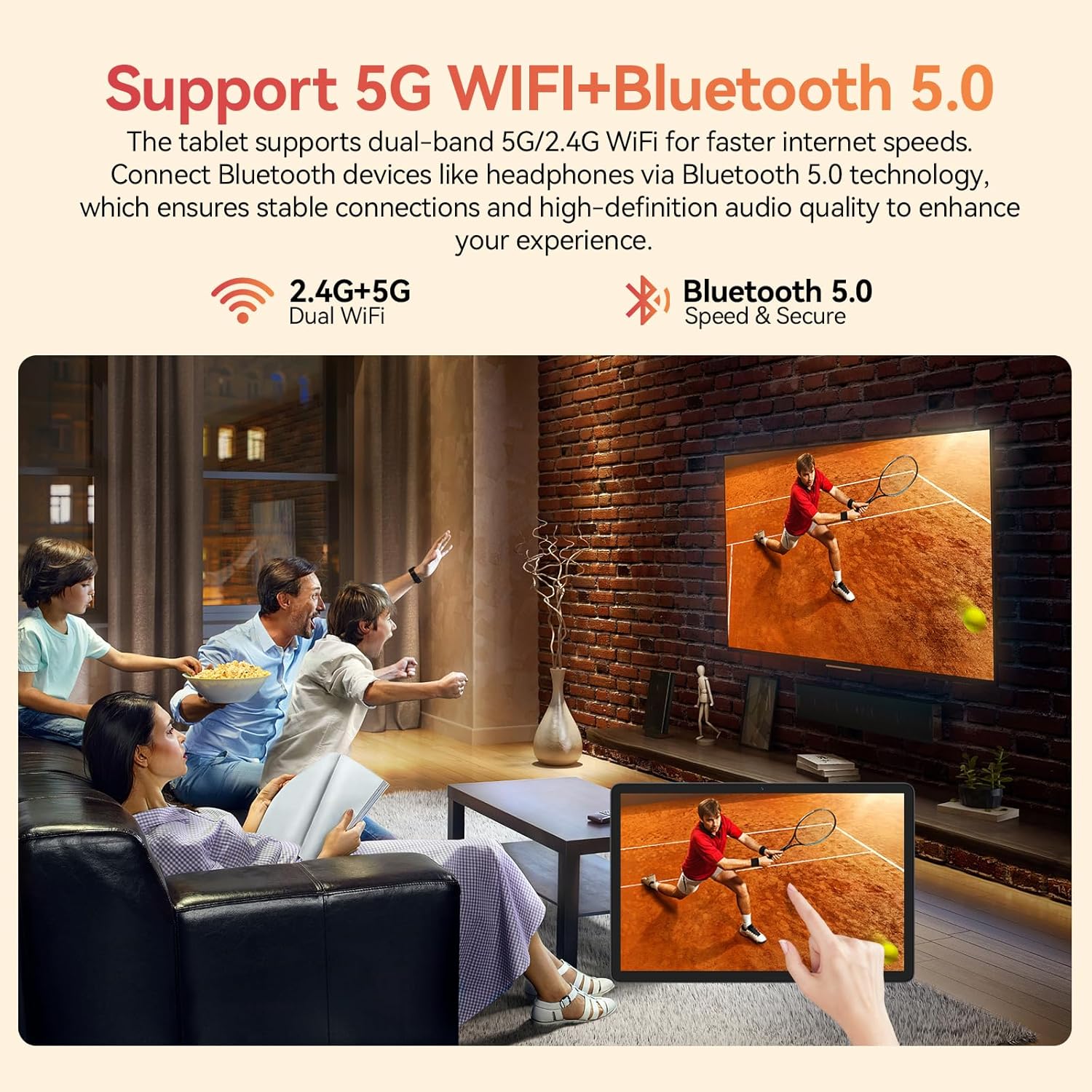 【DUAL 4G LTE+Dual 5G&2.4G WIFI+Bluetooth 5.0】The tablet supports dual SIM cards (SIM cards not included) for Dual 4G LTE standby (Supports T-Mobile), keeping you productive and connected online. It is also equipped with high-speed AC 2.4G/5G dual-band Wi-Fi and advanced Bluetooth 5.0, ensuring more stable wireless signals, faster data transmission speeds, and swift, reliable connections for all your devices.