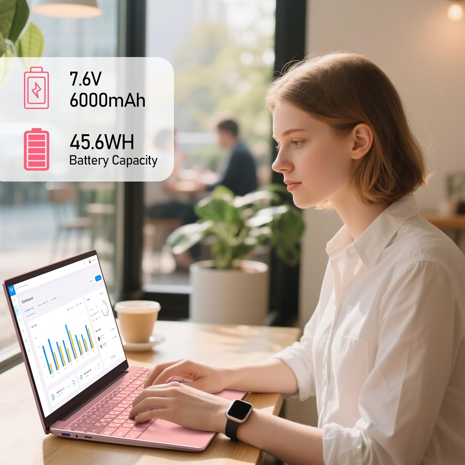 【Sleek, Lightweight & Connected】 Weighing just 3.7 lbs and boasting an ultra-slim profile in a stylish Rose Gold finish, this laptop is your perfect portable companion. Stay connected with fast Dual-Band WiFi, Bluetooth 4.2, 2x USB 3.0 ports, a Mini HDMI for a second screen, and a TF card reader for easy storage expansion