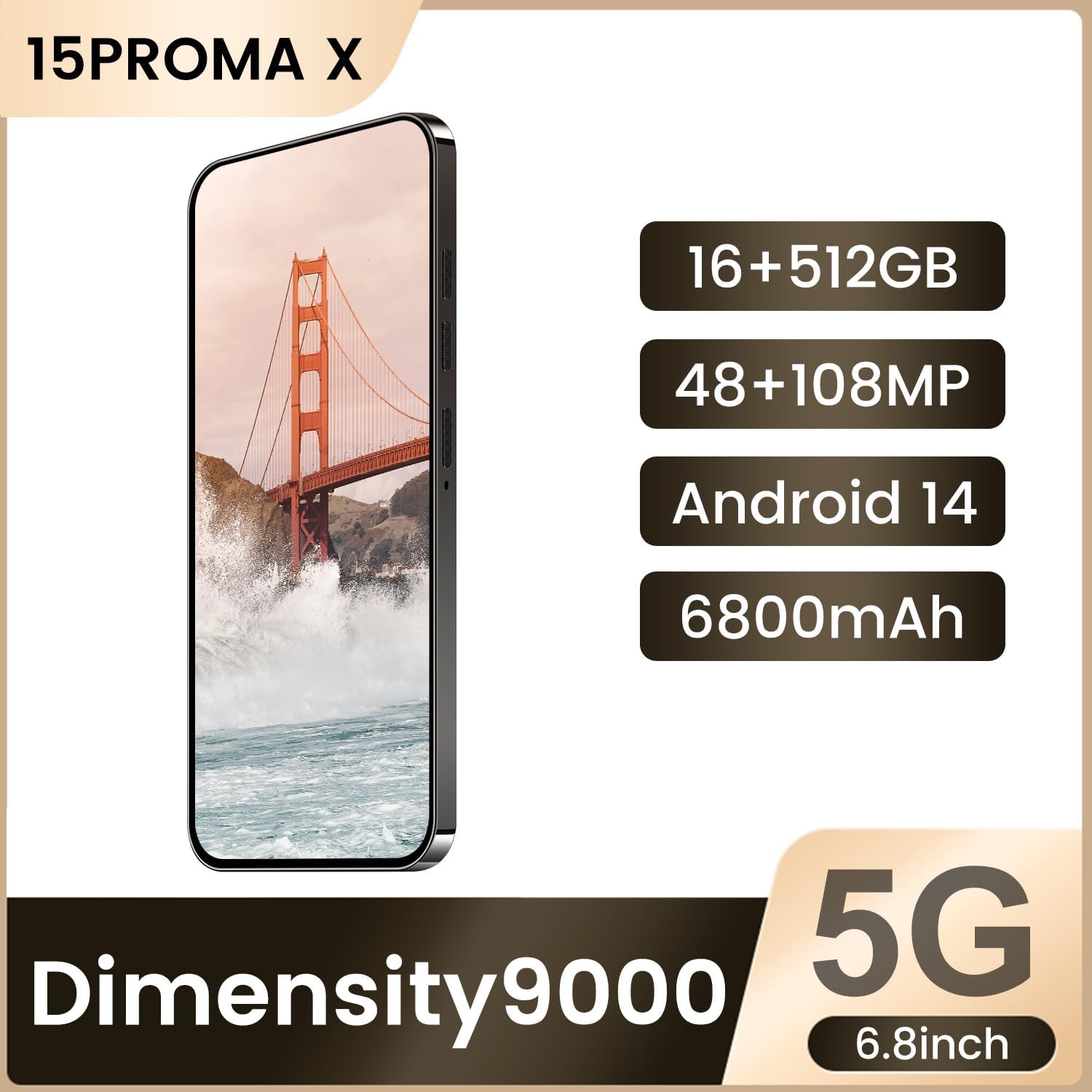15ProMax 5G Unlocked Smartphone,16GB+512GB Fully Cell Phone for Android 14, 6.8″ Unlocked Cell Phone, 6800mAh, 48MP+108MP Dual Camera/Dual SIM/Fingerprint Lock/Face