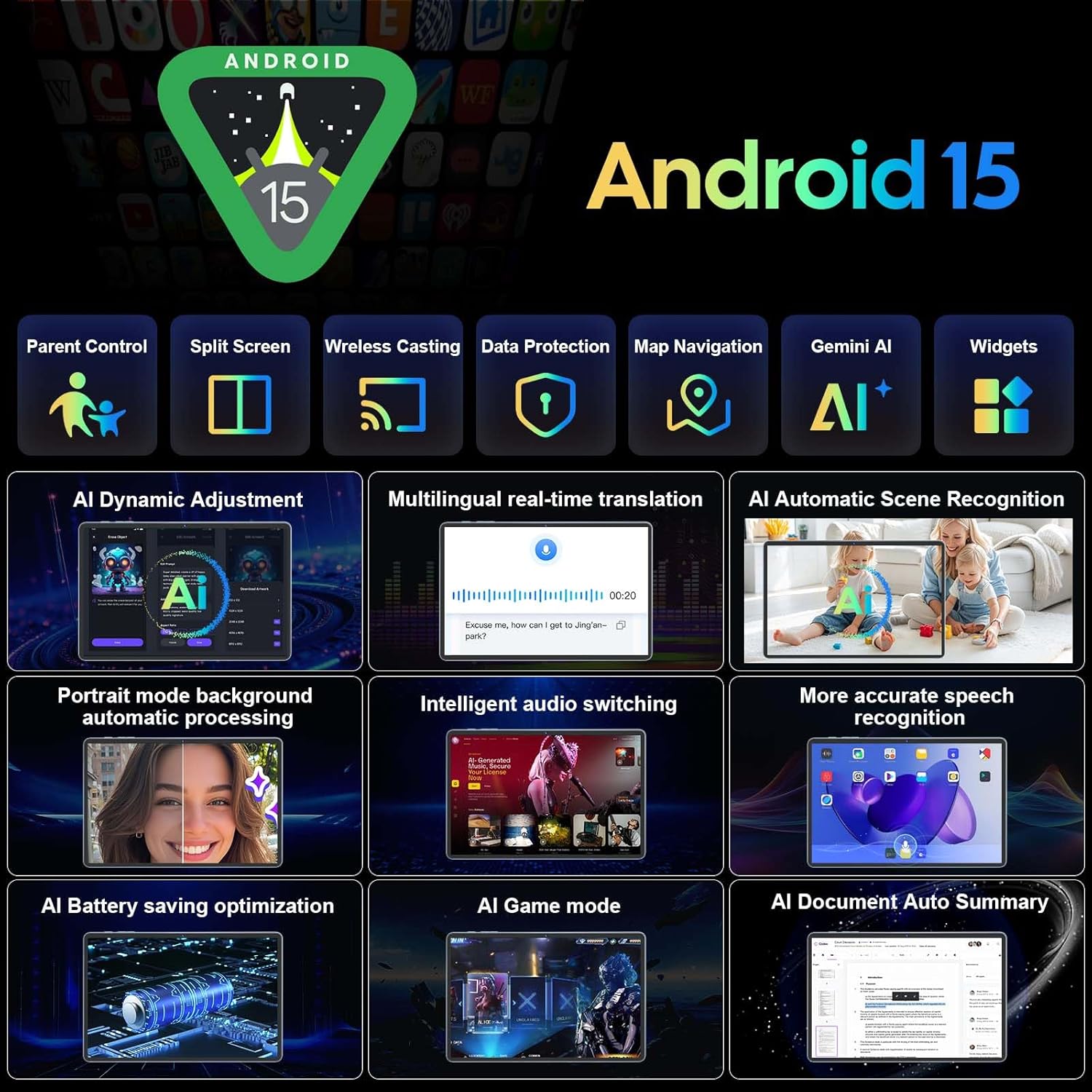 【2025 Newest Android 15 & Octa-core Processors】The new 11 inch tablet runs on the latest Android 15 OS and is powered by a high-efficiency octa-core processor. This android 15 tablet brings enhanced security, customizable privacy controls, and seamless multitasking. Features like split-screen mode, parental control, and low blue light mode make this 11 inch tablet a reliable choice for entertainment and productivity. Access millions of apps through the Play Store
