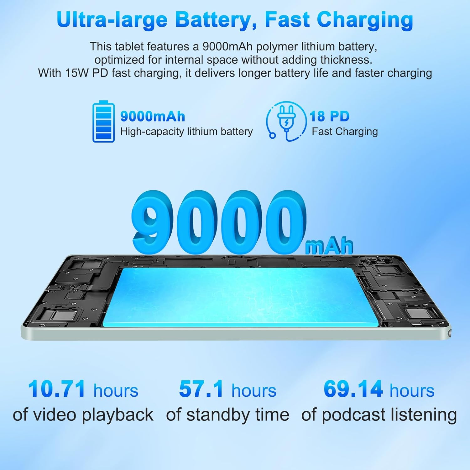 LONG-LASTING BATTERY AND SUPERIOR SOUND: Contains a 9000mAh polymer lithium battery optimized for internal space utilization without increasing device thickness. Coupled with fast charging technology, it offers longer usage times and shorter charging periods. The quad-speaker stereo configuration, paired with a high-power smart amplifier chip, delivers superior audio quality for an immersive sound experience.