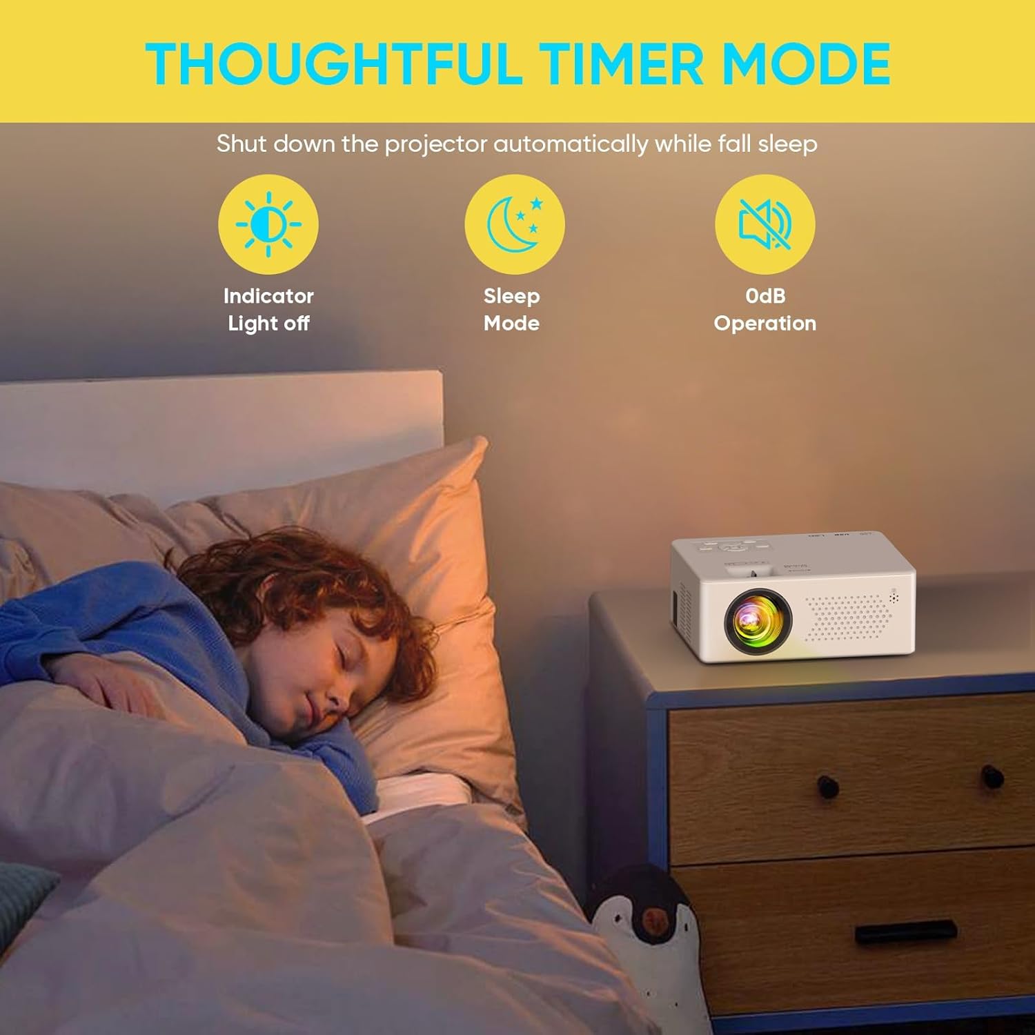 🎁【Low Noise & Long Lamp Life】The Mini projector is lower in noise and more durable than previous models thanks to advanced fan cooling technology. Powerful cooling system cools the heat of lamp efficiently, extending the bulb life to 50,000 hours, which means you can use it more than 15 years.