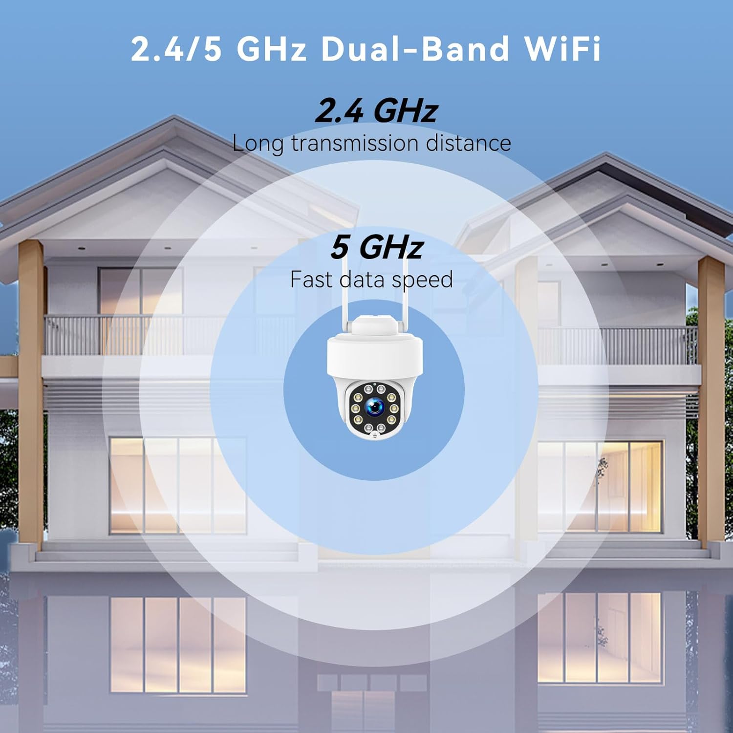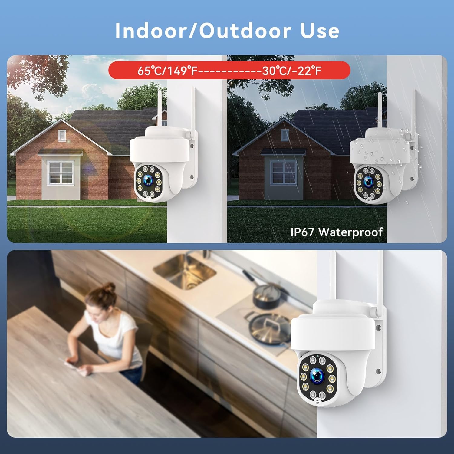 360 DEGREE FULL VIEW & AUTO TRACKING: PTZ Wireless Surveillance Camera Enhanced Dual WiFi Antenna, 355° pan 140° tilt, wider viewing angle, smaller blind spot, you can also freely click to enlarge for more details. Protect your family and property safety.The PTZ surveillance camera will auto track moving vehicles, pedestrians and all movable objects. Perfect for home, office or even garage use!