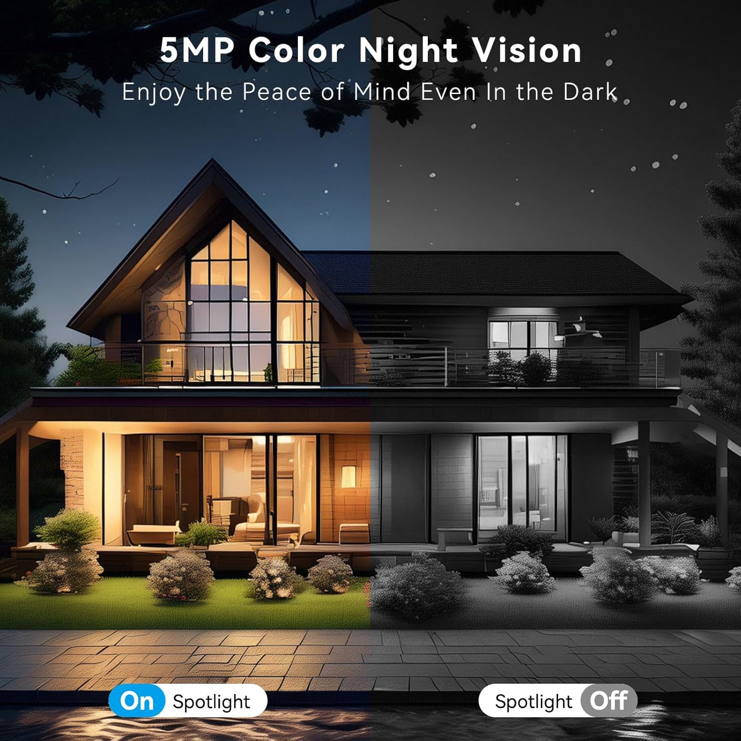 5MP UHD PIXEL & FULL COLOR NIGHT VISION: The Wireless Security Camera System with Monitor is equipped with a 1/3” CMOS sensor and 3D Digital Noise Reduction image technology that displays 5 megapixel HDR high definition images in pristine detail. With the infrared LEDs inside the camera’s automatic IR cut filter, you can see passersby and license plates in full color up to 65 feet at night. Buy with peace of mind, use with confidence.