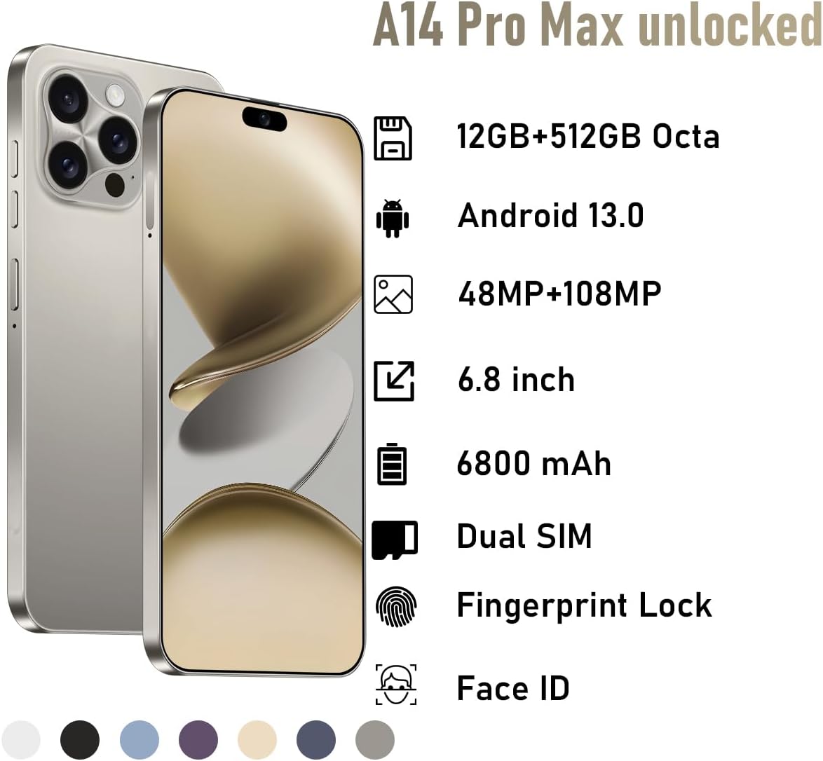 Introducing the A14 Px Unlocked 5G Cell Phone – the ultimate smartphone experience of 2025! This cutting-edge Android 13 smartphone is engineered for performance and versatility, featuring the powerful Snapdragon 8cen2 processor that ensures lightning-fast speed and efficiency. Whether you’re streaming videos, playing games, or multitasking, this phone handles it all with ease. With its stunning 6.8″ HD screen, the A14 Px delivers vibrant visuals and an immersive viewing experience. Capture every moment in incredible detail with the dual-camera system, featuring a 24MP front camera for stunning selfies and a 50MP rear camera for breathtaking photos and videos. Stay connected with blazing-fast 5G technology and enjoy the flexibility of a dual SIM design, making it easier than ever to manage your personal and business lines from one device. The robust 6800 mAh battery provides long-lasting power, ensuring you stay charged throughout your busy day without needing to constantly recharge. This unlocked phone offers exceptional value, providing a generous 8GB of RAM and 256GB of internal storage to accommodate all your apps, photos, and files. Say goodbye to restrictions with an unlocked cell phone that lets you choose your carrier and plan. The A14 Px Unlocked 5G Cell Phone is perfect for anyone seeking a reliable, high-performance mobile phone. It’s an ideal choice for those looking for cheap unlocked cell phones without compromising on quality. Upgrade your mobile experience with this new, desbloqueados (unlocked) Android phone that redefines what a smartphone can be! – Unlocked for use with any carrier – Snapdragon 8cen2 processor for unparalleled performance – Dual SIM capabilities for easy management of multiple lines – Stunning 6.8″ HD display – Advanced camera features with 24MP and 50MP lenses – Long-lasting 6800 mAh battery – Generous 8GB RAM and 256GB storage Experience the future of communication with the A14 Px Unlocked 5G Cell Phone – where innovation meets affordability. Get yours today and join the world of high-performance smartphones!