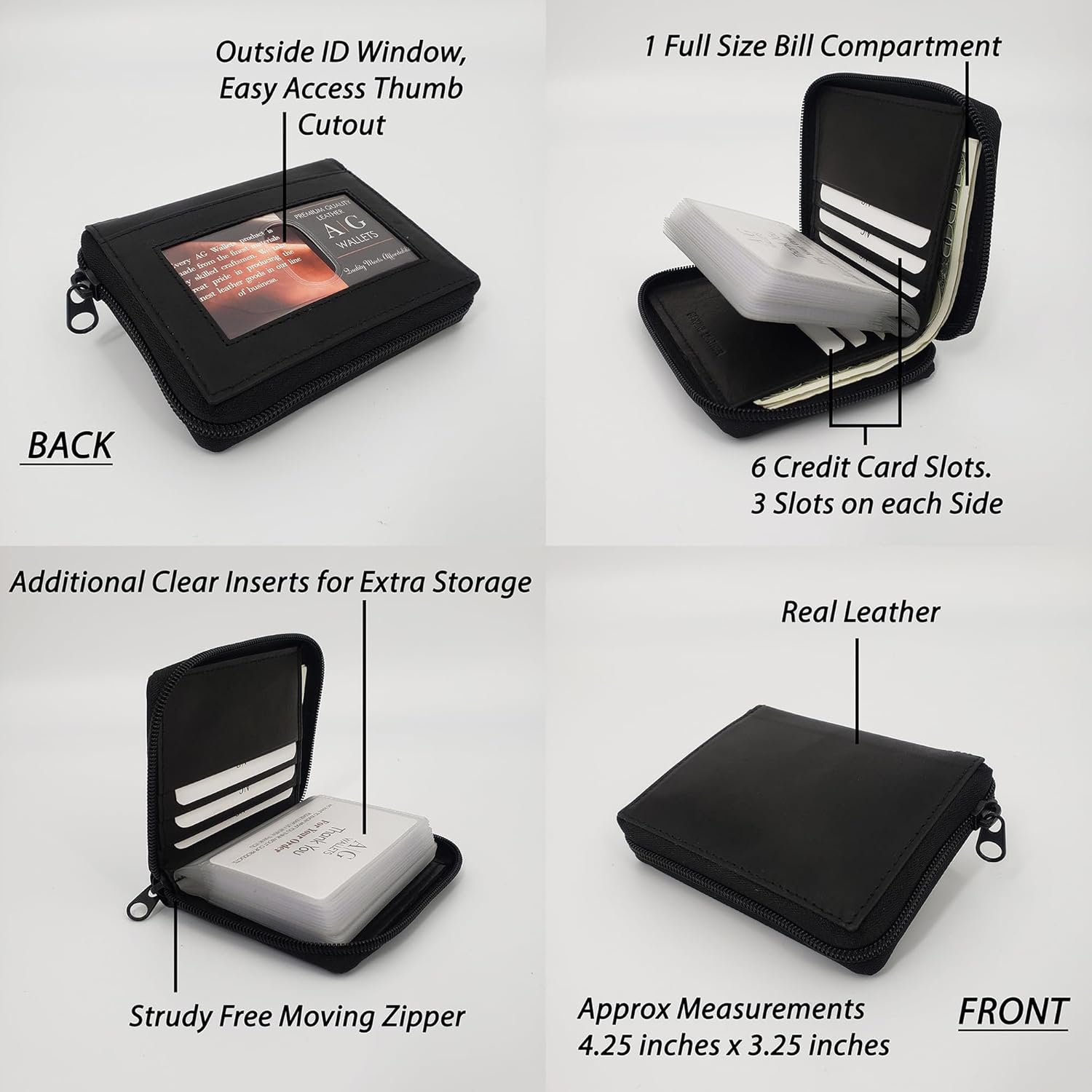 Men’s Genuine Leather Zip Around Bifold Wallet With Center stitched Sixteen credit card clear plastic inserts, One outside ID window have become very popular because of their utility and convenience. These wallets also have Six credit card slots. They also feature a compartment and a full zip-around closure for the wallet. With this wallet you can organize and keep safe all of your credit cards, identification cards, and other essentials. This wallet is also an excellent gift choice if you are planning to give the product as a gift!