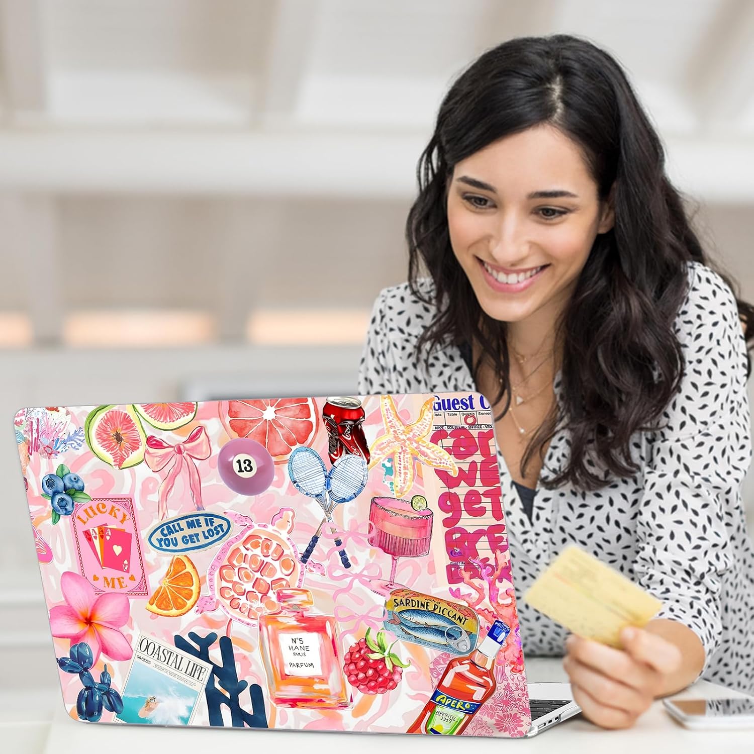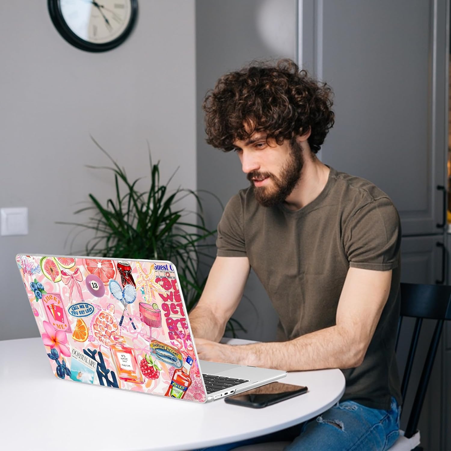 AKIT Compatible with MacBook Air 13 inch Case 2025 2024-2022 M4 M3 M2 A3240 A3113 A2681, Pattern Hard Shell Laptop Case+Screen Protector+Keyboard Cover for MacBook Air 13.6 inch 2025, SumPink