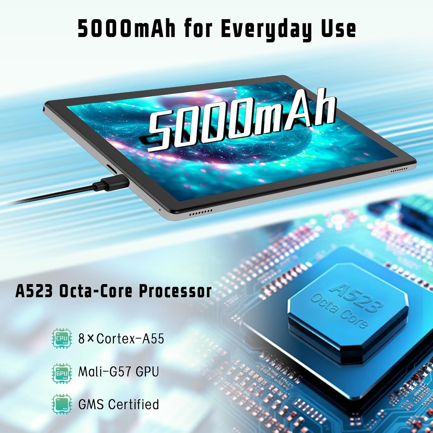 [Durable Battery] Powered by a 5000mAh battery, this tablet provides up to 5 days of standby time or approximately 6 hours of daily use. With convenient charging via the Type-C port, it’s easy to keep your device powered throughout the day.