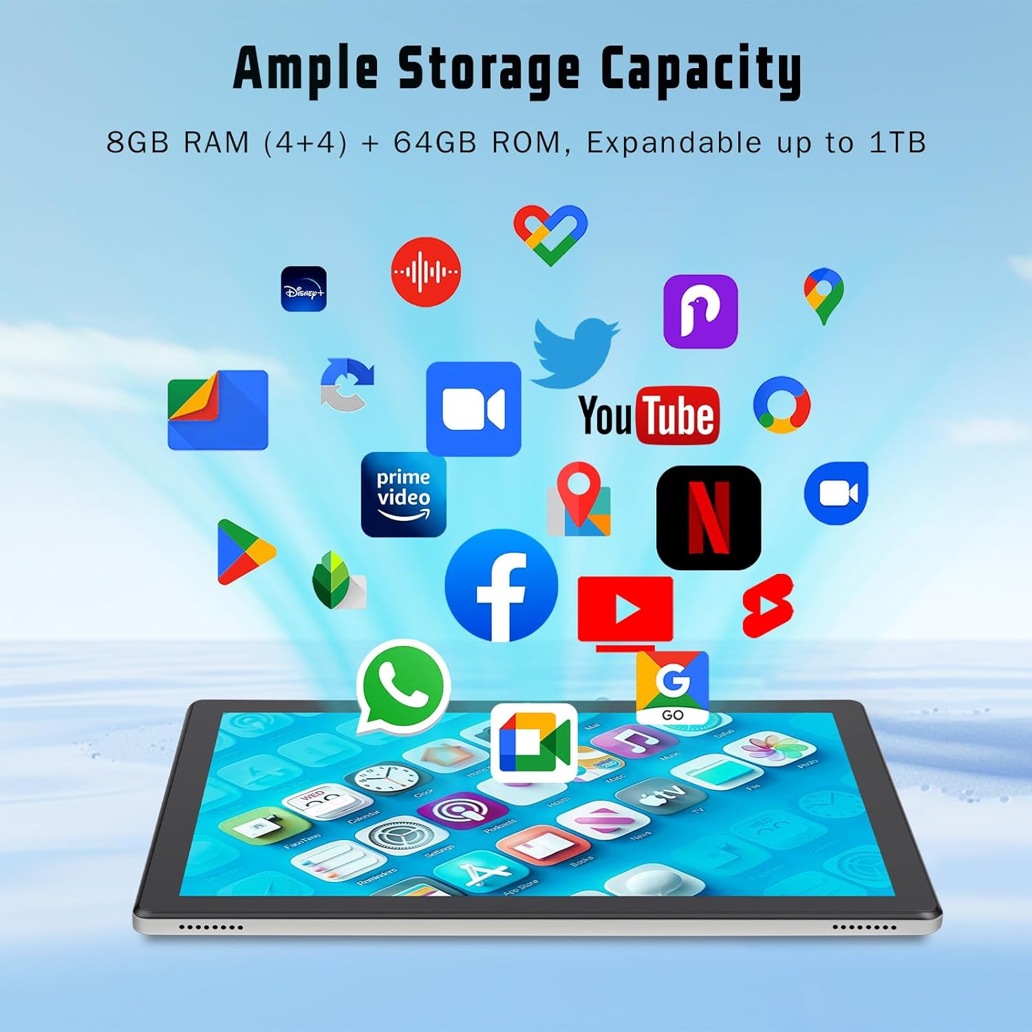[Massive Storage] Equipped with 8GB (4+4GB) RAM and 64GB ROM, this tablet also supports up to 1TB of expandable storage via microSD card (not included). Preloaded with Google Play, it provides convenient access to a wide range of popular apps.
