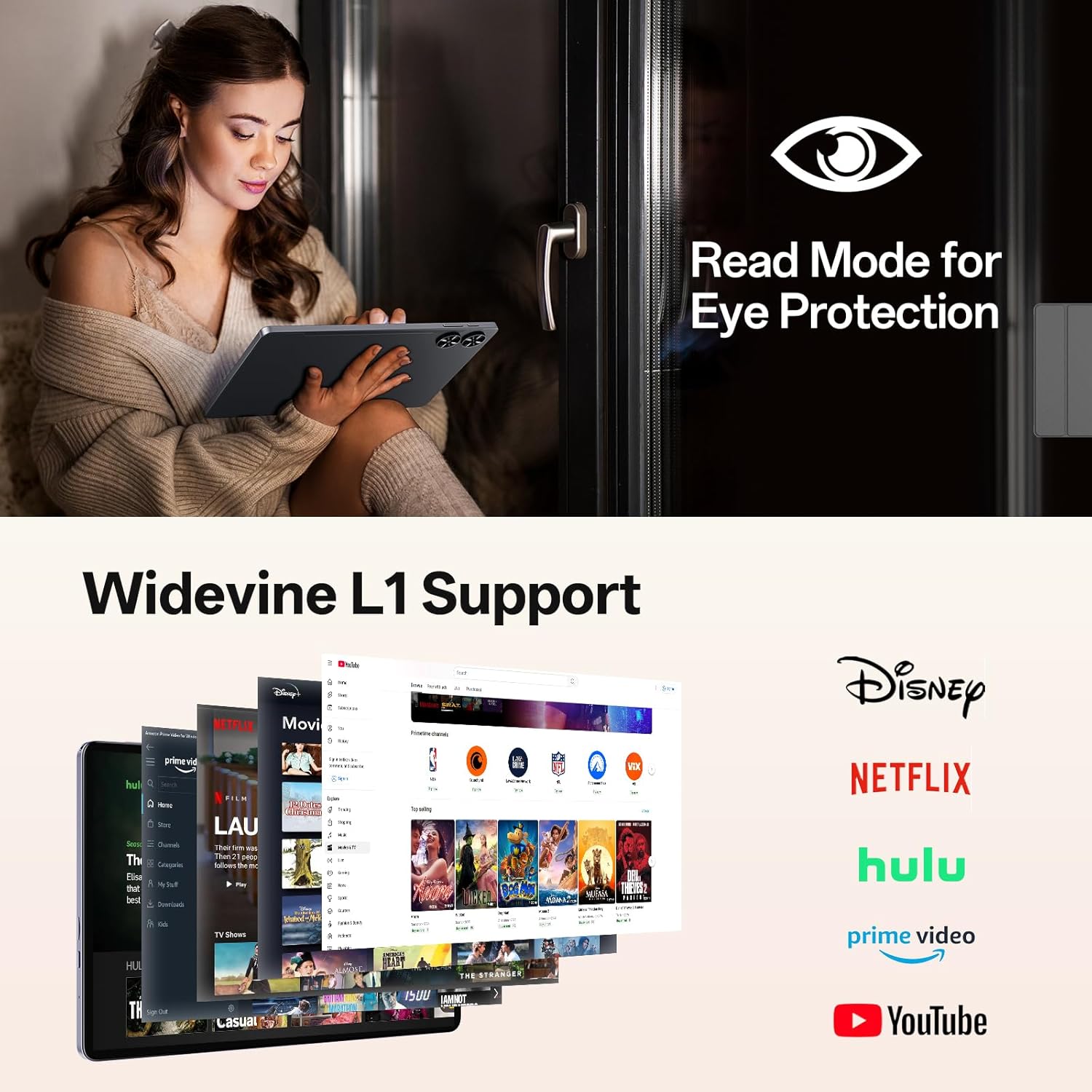 [11-inch IPS display + Widevine L1 certification] The Relndoo tablet features an 11-inch IPS display that provides a realistic visual experience with clear details. With Widevine L1 certification, it supports 1080p HD video playback on Netflix and other platforms. The wireless casting function allows you to easily connect to a big-screen TV. The independent 3.5 mm headphone port allows charging and music playback without any interference, meeting a variety of needs.