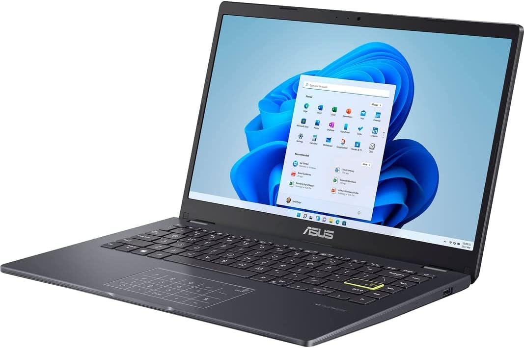 ASUS 2022 14” HD Laptop, Intel Celeron N4020 Processor, 4GB RAM, 64GB eMMC Flash Memory, Graphics 500, Webcam, Stereo Speakers, Black, Windows 11S, 32GB Snowbell USB Card