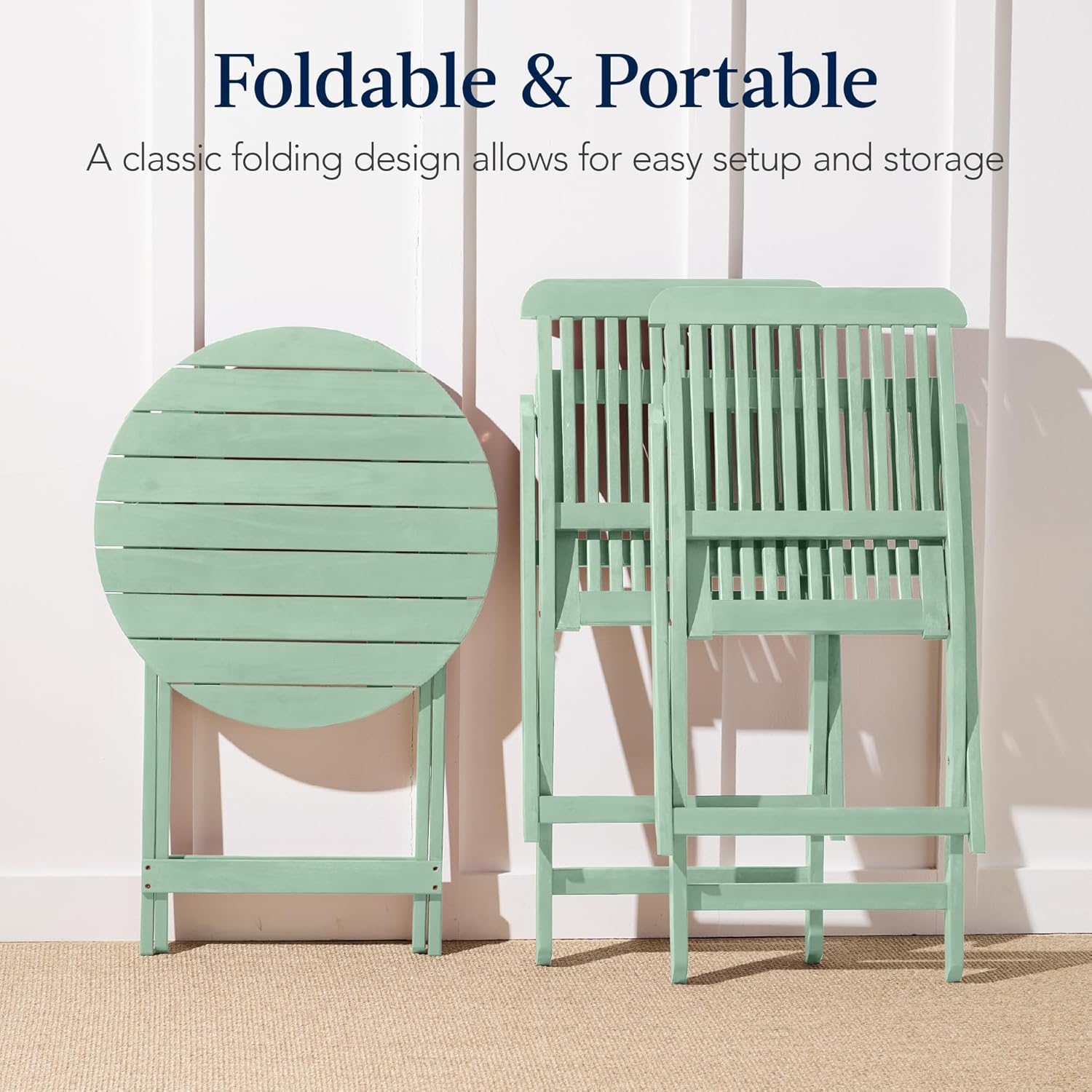 Best Choice Products 3-Piece Acacia Wood Bistro Set, Folding Patio Furniture for Backyard, Balcony, Deck w/ 2 Chairs, Round Coffee Table, Teak Finish – Mint