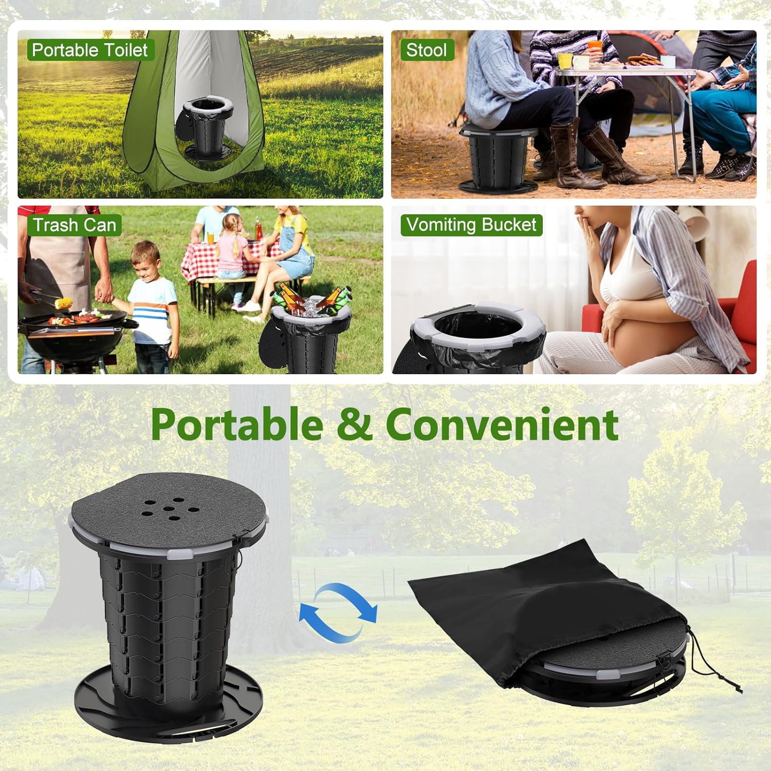 【Perfect for Any Adventure】This multifunctional design lets you switch between multiple uses with ease. Not just a portable camping toilet, it also doubles as a trash can or stool—ready for whatever your outdoor adventures throw at you. Whether you’re camping, hiking, fishing, boating, or stuck in traffic, this all-in-one solution has you covered. Lightweight, durable, and designed for emergencies, it’s the ultimate companion for camping trips, road trips, construction sites, and more.