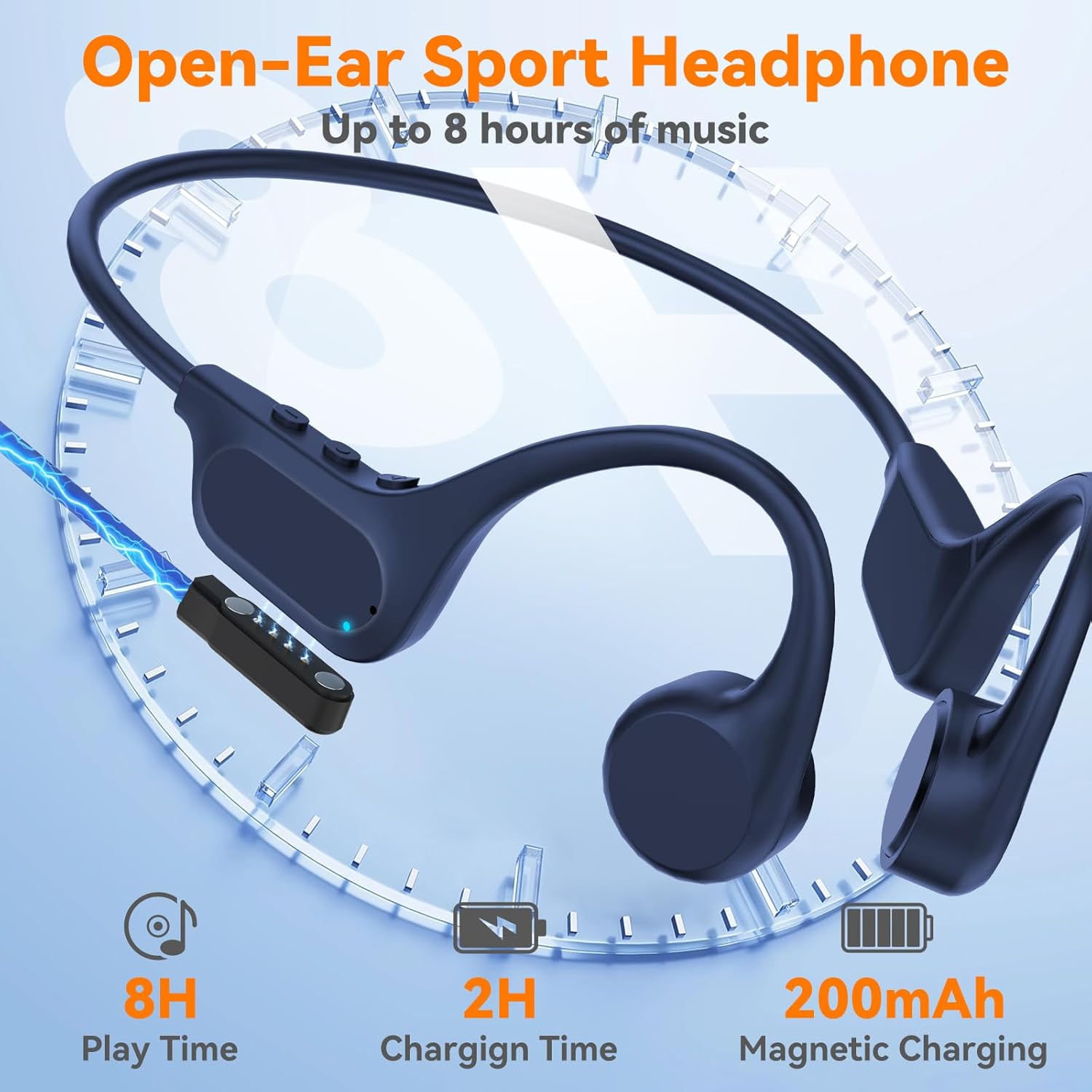 Open-Ear Comfort: Crafted from ultra-soft silicone, these bone conduction Bluetooth headphones offer a comfortable fit for extended wear. Featuring advanced bone conduction technology, they deliver high-quality sound while keeping your ears open to ambient noise, making them ideal for swimming, running, cycling, and other outdoor activities. Not only are they safer than in-ear earbuds and over-ear headphones, but they also help prevent hearing damage