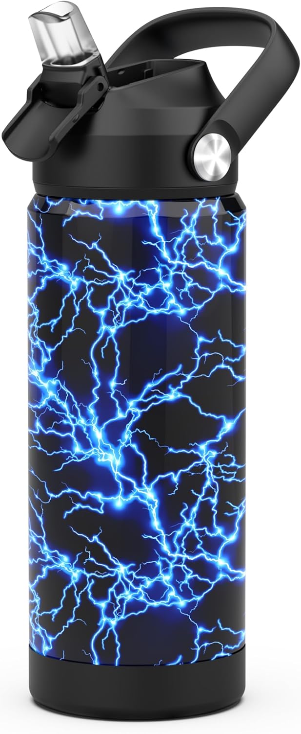 Boys Water Bottle with Straw,18 oz Kids Insulated Cups with Stainless Steel Leak Proof for School,Sport&Travel(Lightning)