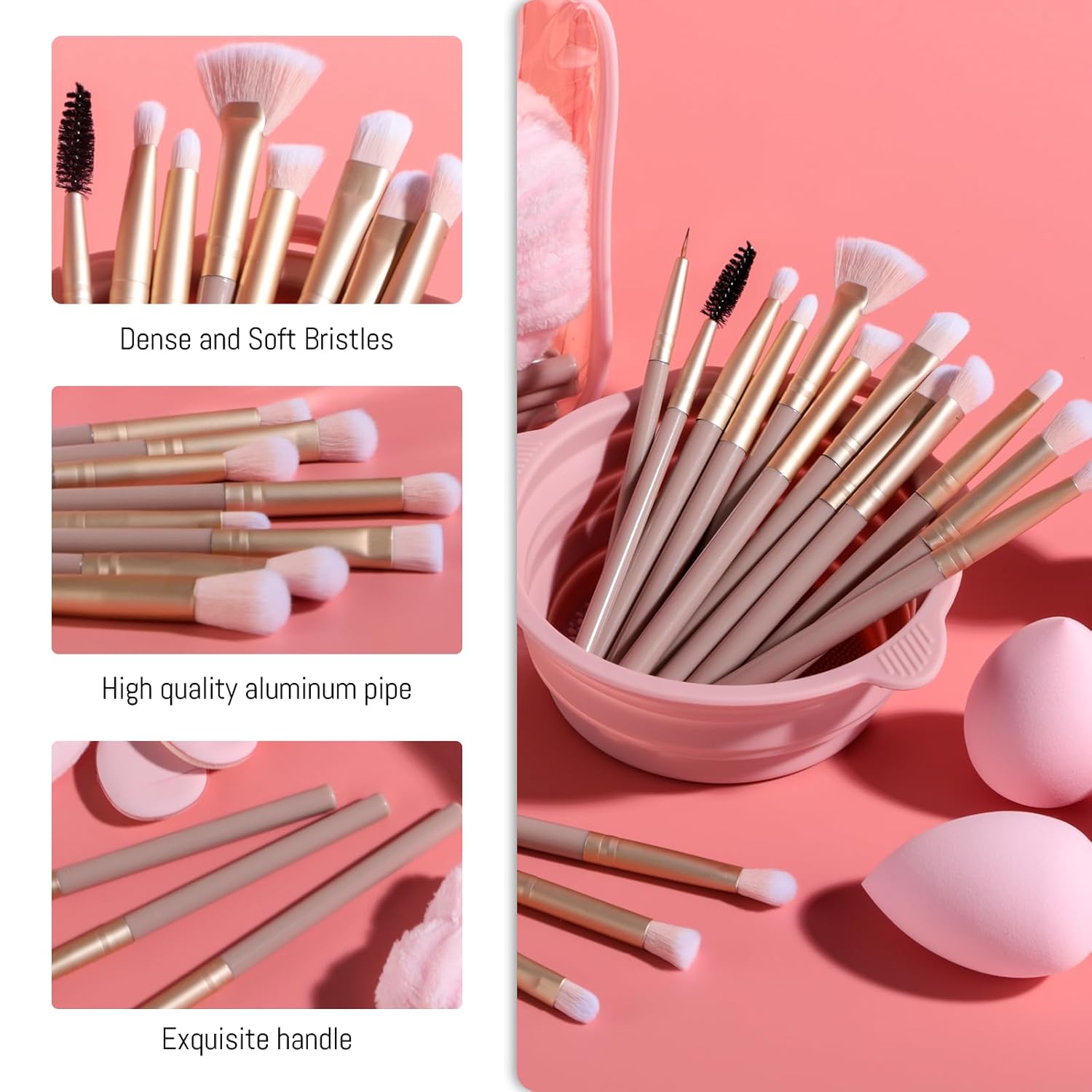 💎Portable Pouch Included: Comes with a stylish PINK pouch for convenient storage and travel, keeping your brushes organized and protected while on the go.