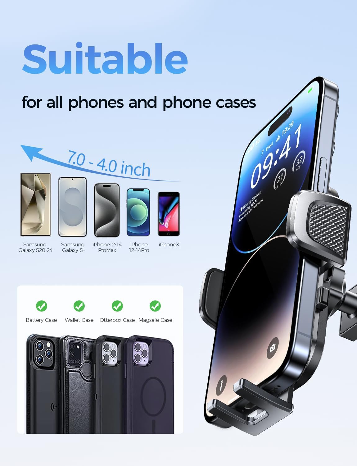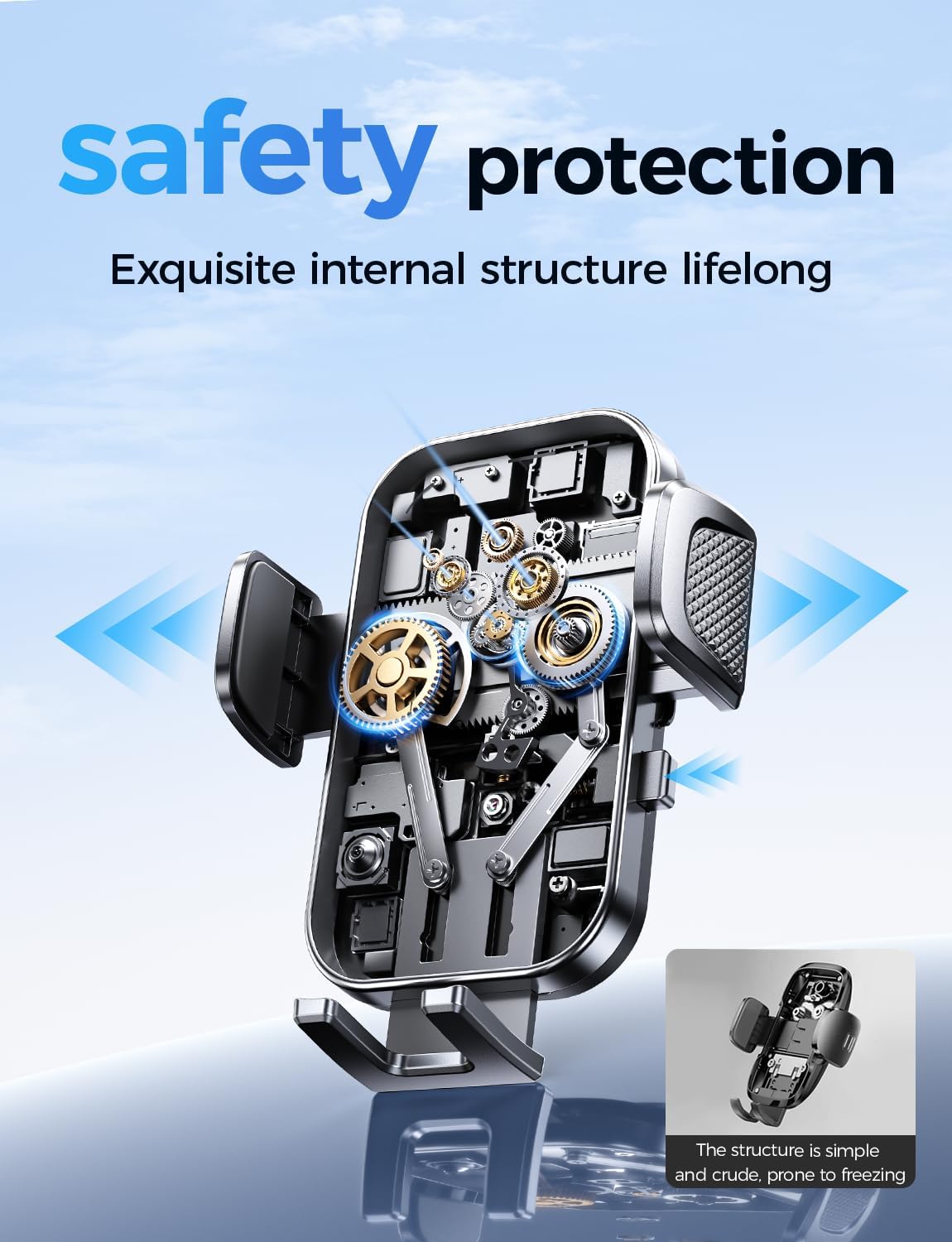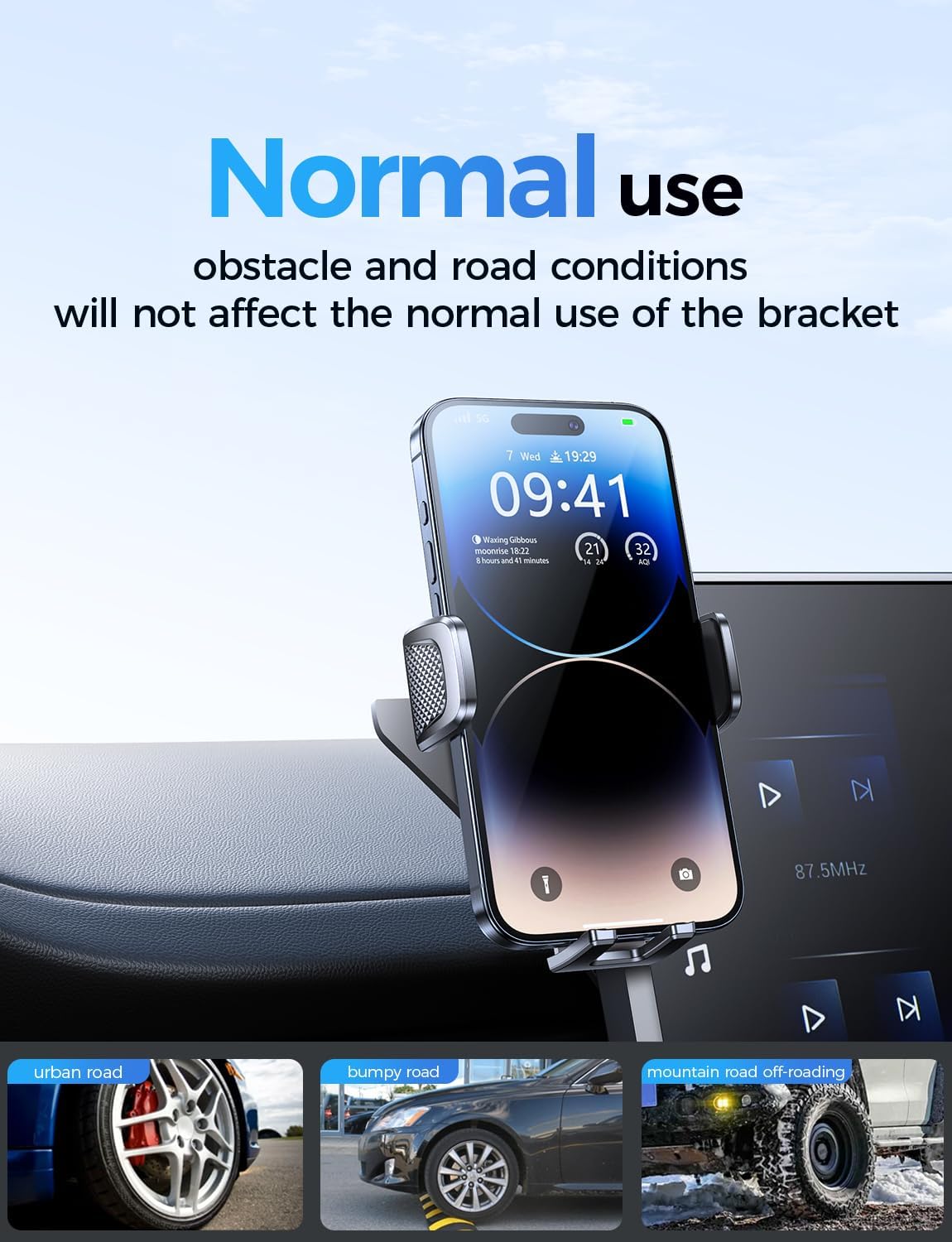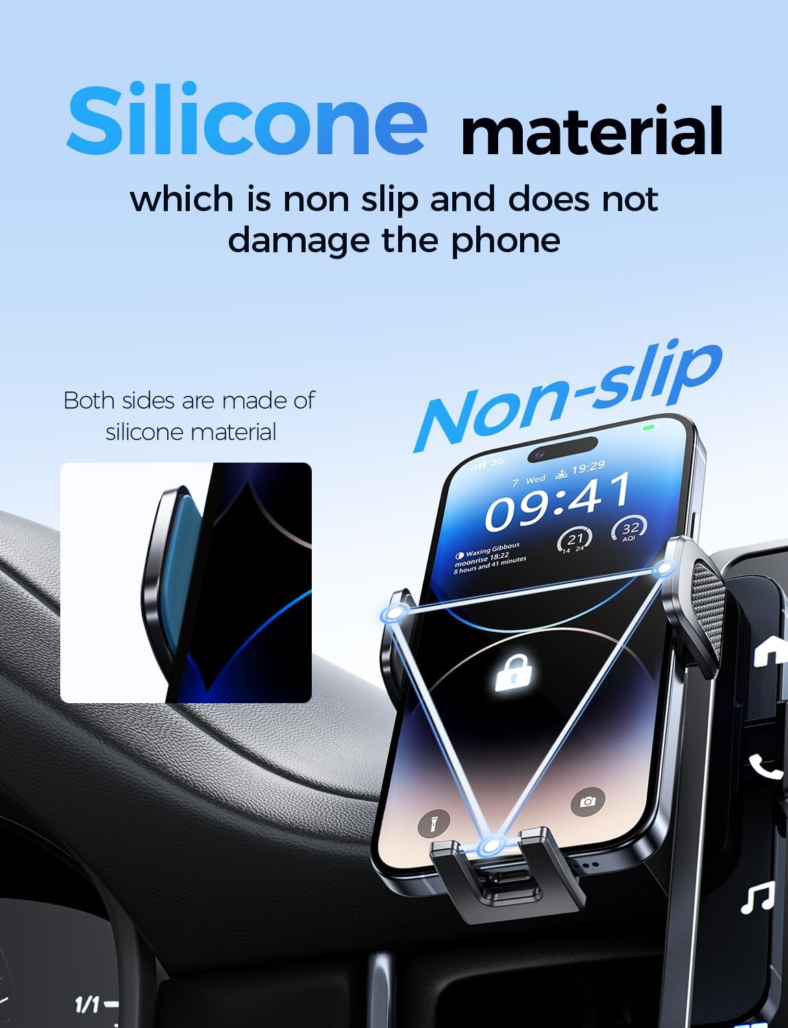 Unparalleled stability ensures safe driving:5mm thick silicone pad to care for the love machine Thickened lower wall anti slip design.Dual robotic arms+dynamic structure, firmly grip the phone, unable to shake it off, quickly locks the phone in 1 second of contact, and does not shake during any bumps.