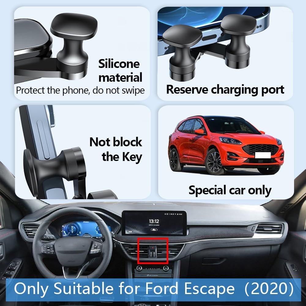 👍 【Special Mobile Phone Holder】: Only compatible with 2020-2025 Ford Escape. SPECIAL CAR BASE DESIGN, only for a specific model development. Please confirm the model and year of your car before placing the order. Or contact us and send a picture of the central control of your car, and we will help you pick the one.
