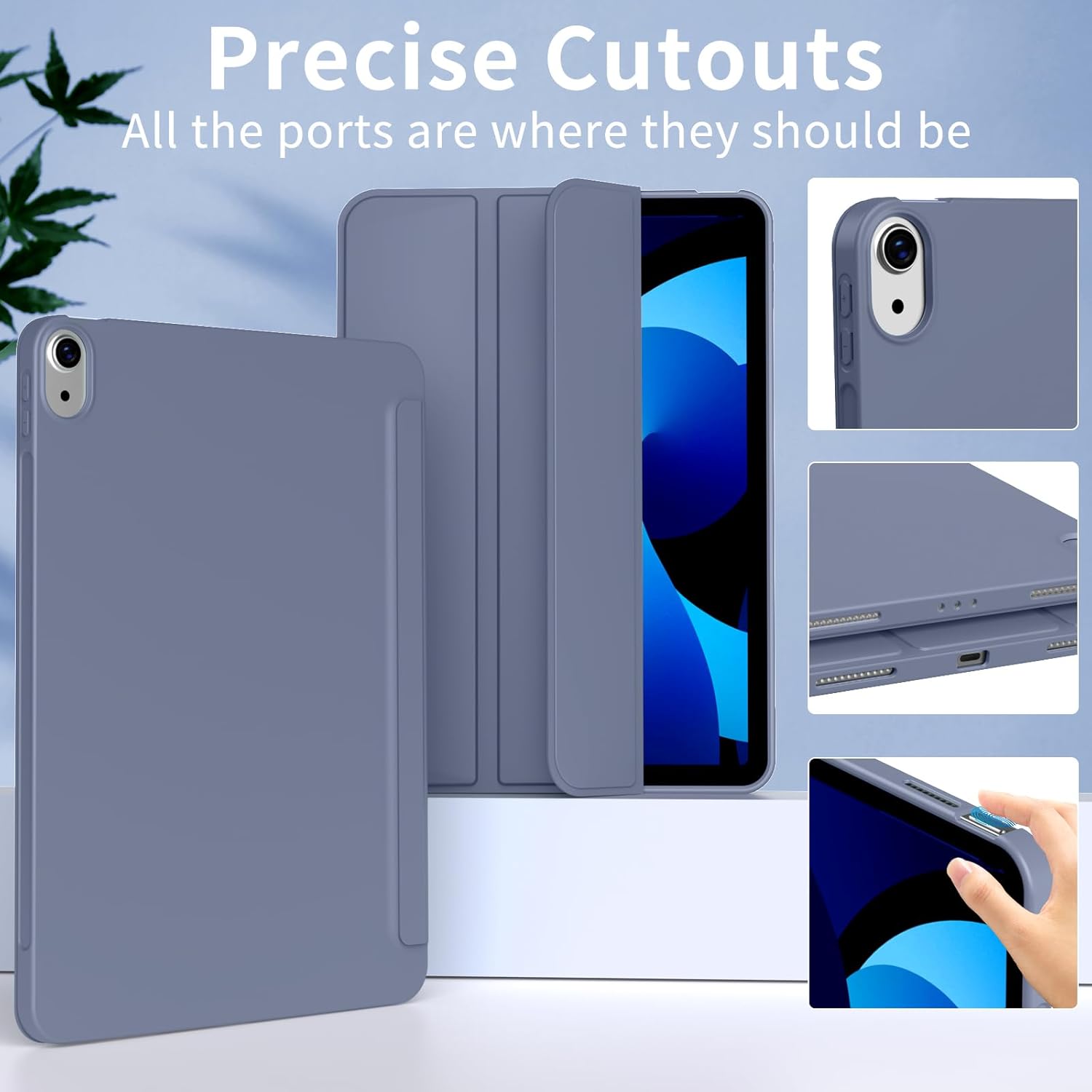 Case for iPad (A16) 11th Generation 11 Inch 2025/ iPad 10th Generation 10.9 inch 2022, Auto Wake/Sleep, Support Touch ID, Slim Trifold Stand Protective Cover with Soft TPU Back (Purple Gray)
