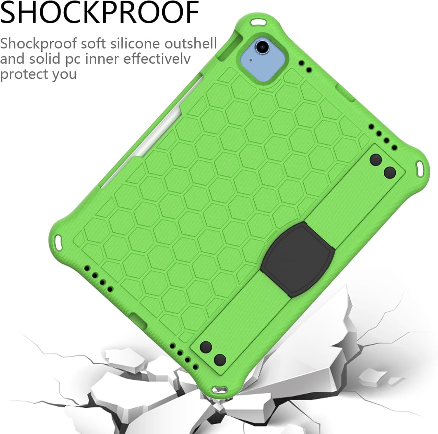 Case for iPad (A16) 11th Generation 2025 Tablet Case for Kids, Rugged Lightweight EVA Shockproof Protective Handle Stand Cover Honeycomb Heat Dissipation(Green+Black)
