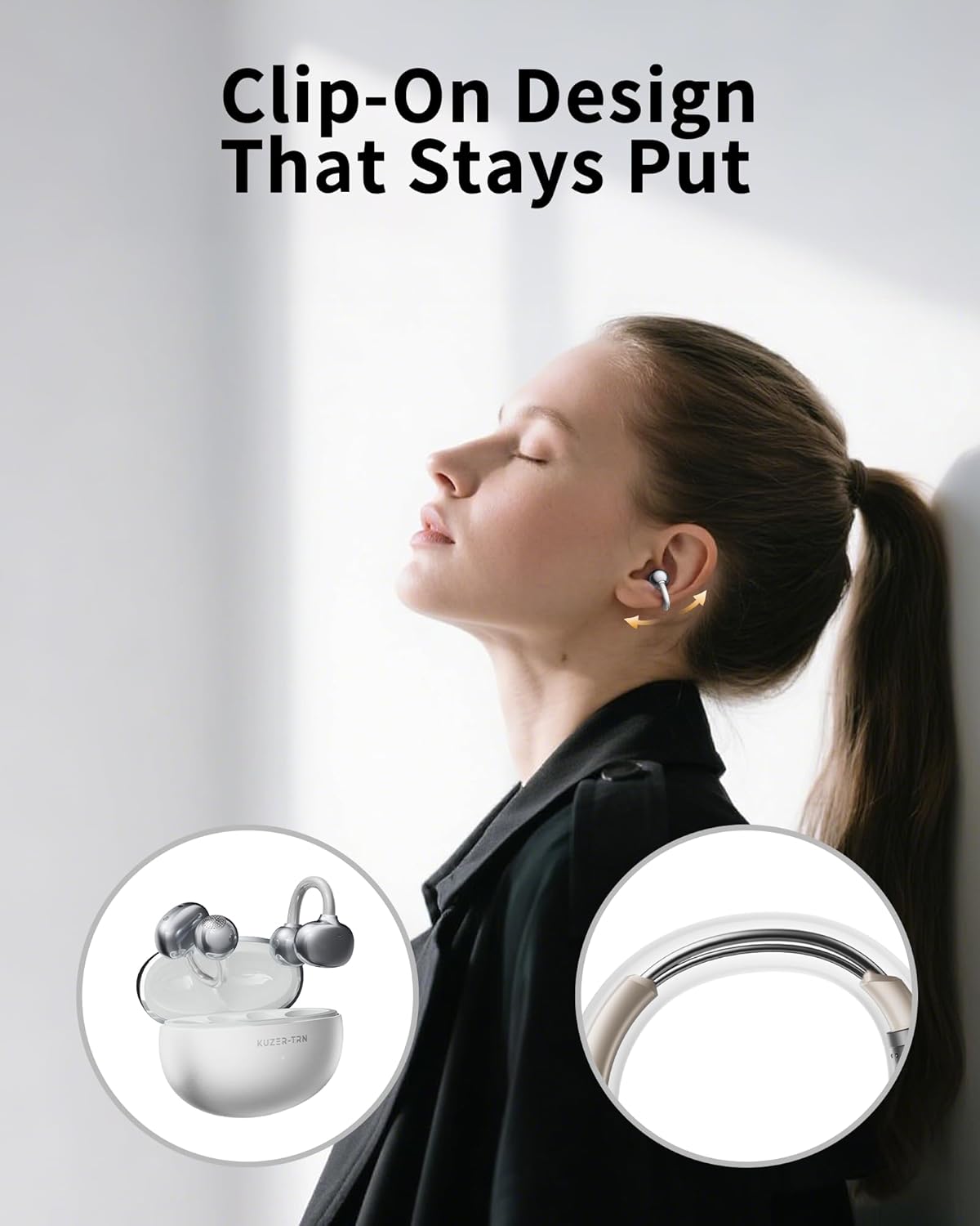 【Fashionable Design, Comfortable Wearing】Unique ear clip design, combined with modern minimalist style, the ear clip structure is light and fits the ear, avoiding the pressure of traditional earplug headphones on the ear canal, and will not feel uncomfortable even if worn for a long time, suitable for small ears and people wearing glasses.