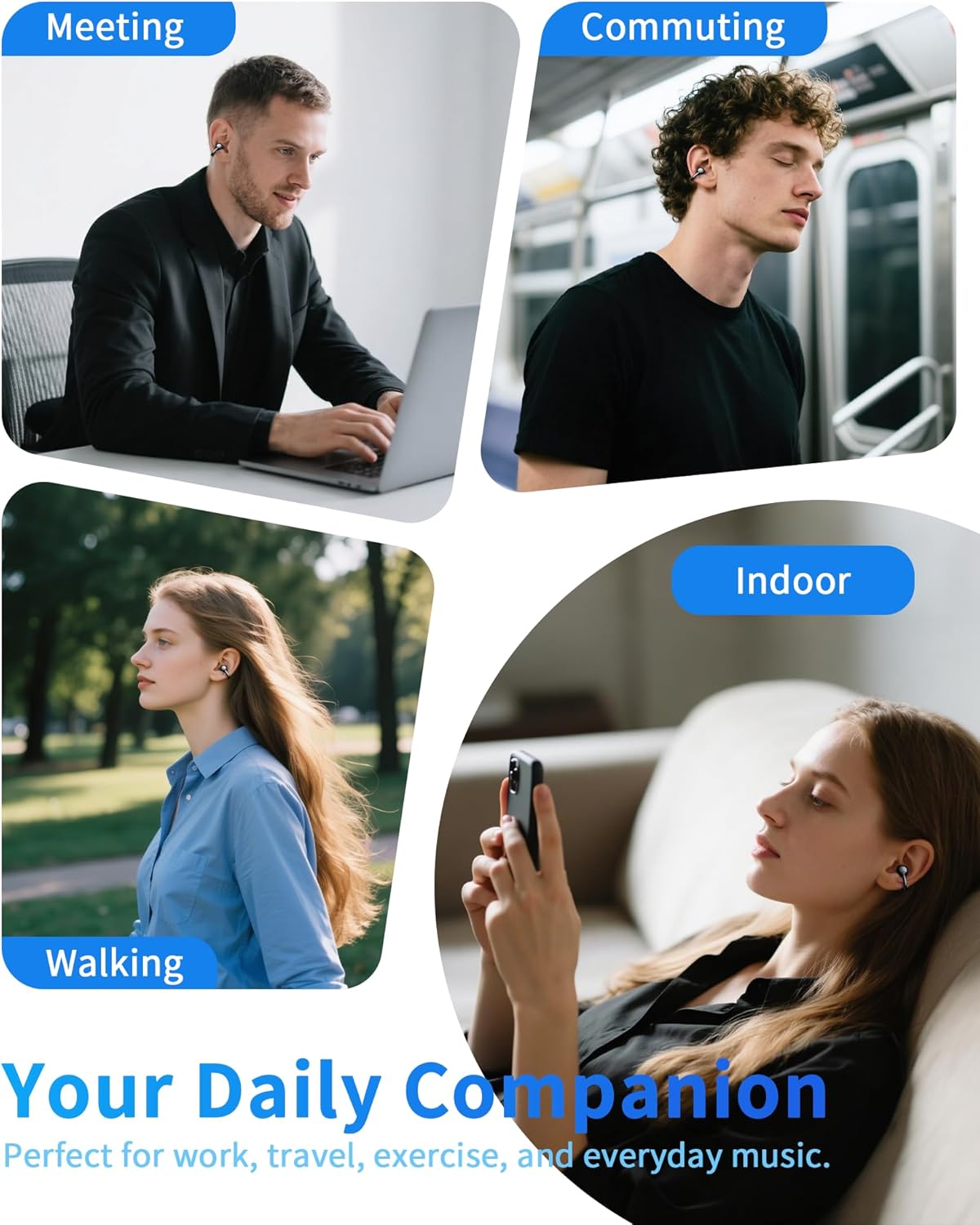 【Smart Touch Controls】The open ear clip on earbuds is equipped with seamless, responsive controls that make adjusting volume, managing calls, and skipping tracks effortlessly simple. Enjoy premium functionality with just a tap, allowing you to stay connected without distraction.