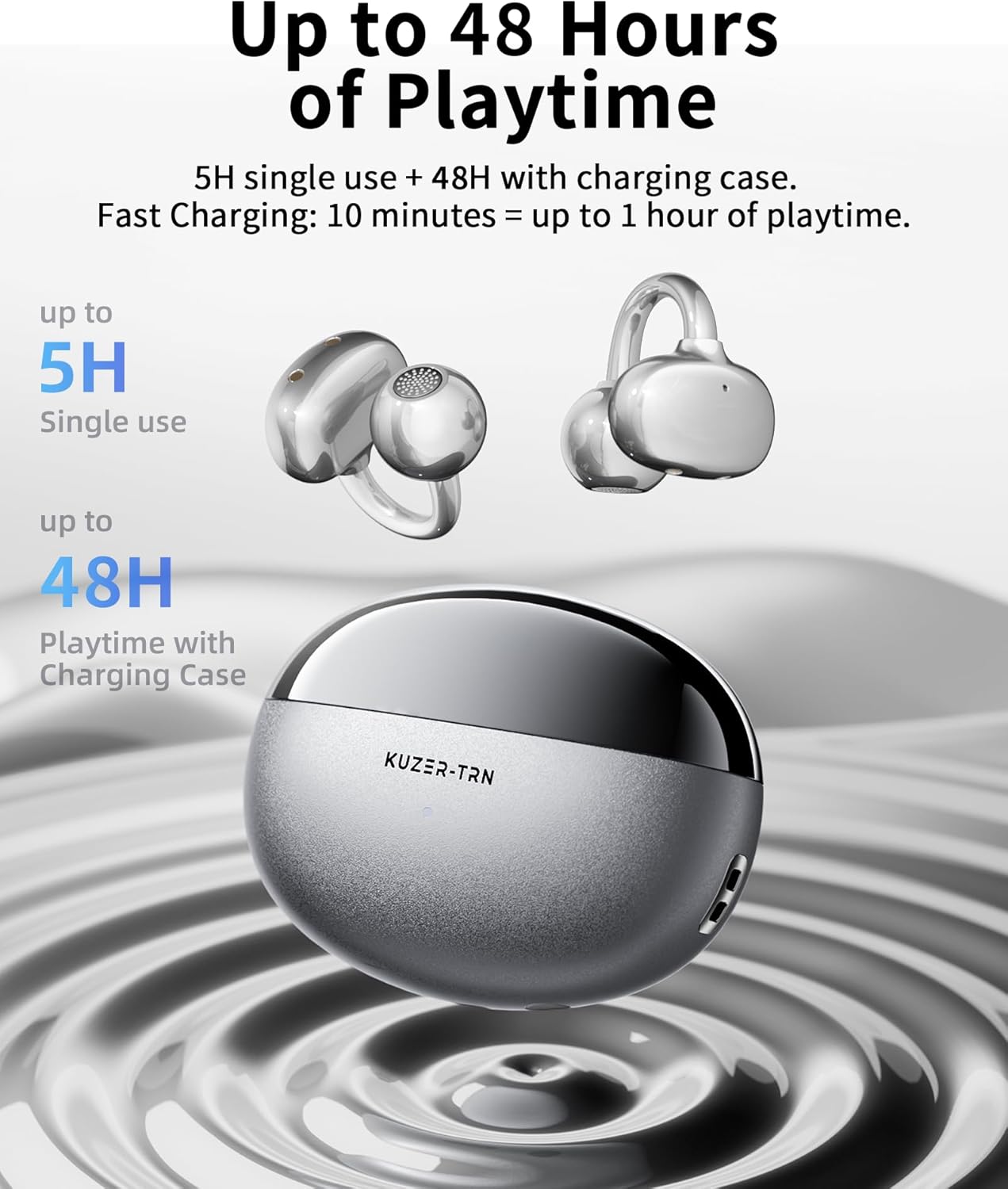 【Waterproof and Sweatproof】With IPX5 waterproof function, the normal use of the earphones can be guaranteed even during intense exercise or rainy days. Whether it is running, fitness or outdoor sports, Kuzer ear clip Bluetooth earphones can accompany you to enjoy music and calls anytime, anywhere.