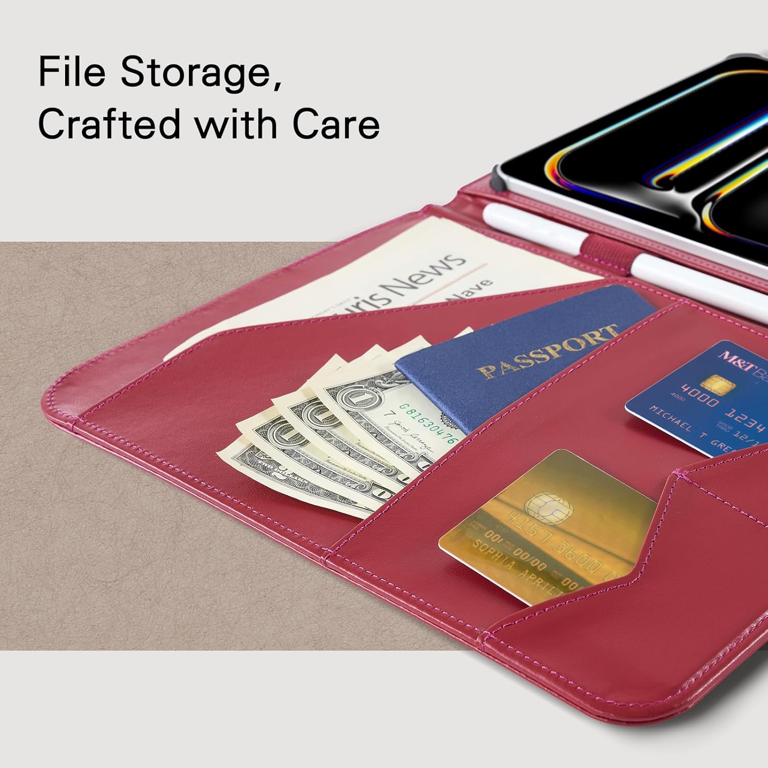 Folder Design & Open Ports: The folder-style design keeps your iPad and essential documents organized in one sleek case, making it ideal for everyday use and professionals on the go. Open ports offer easy access to all functions without removing the case.