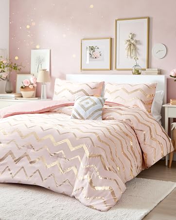 Codi Twin Comforter Set for Teen Girls, 3-Piece Pink and Gold Bedding, Warm and Lightweight for Dorm or Bedroom