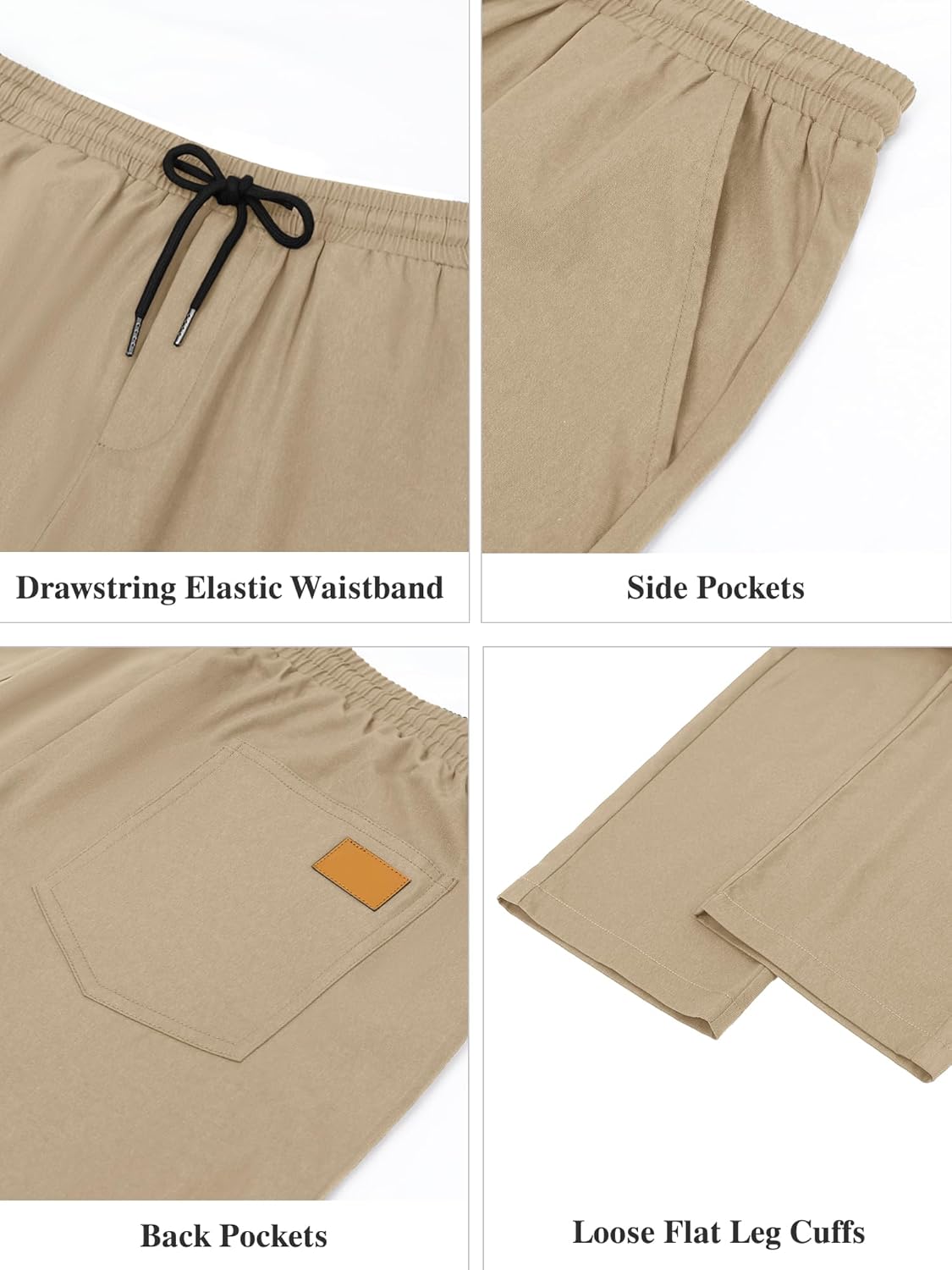 Comdecevis Mens Casual Pants Drawstring Elastic Waist Joggers Sweatpants with Pockets Straight Leg Cargo Pants