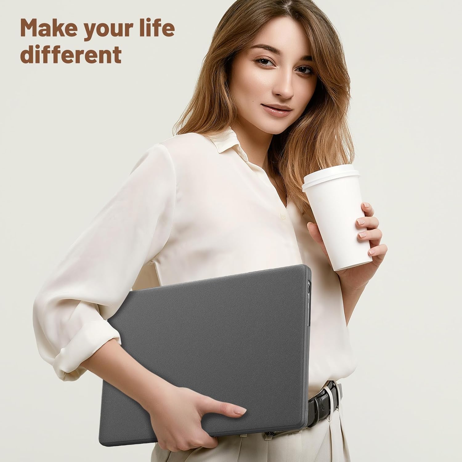 Compatible with MacBook Pro 16 inch Case 2025 2024-2021, Foldable Stand, Anti-Fingerprint PU Leather Protective Hard Shell Cover for M4 M3 M2 M1 Pro Max A3403 A3186 A2991 A2780 A2485, Grey