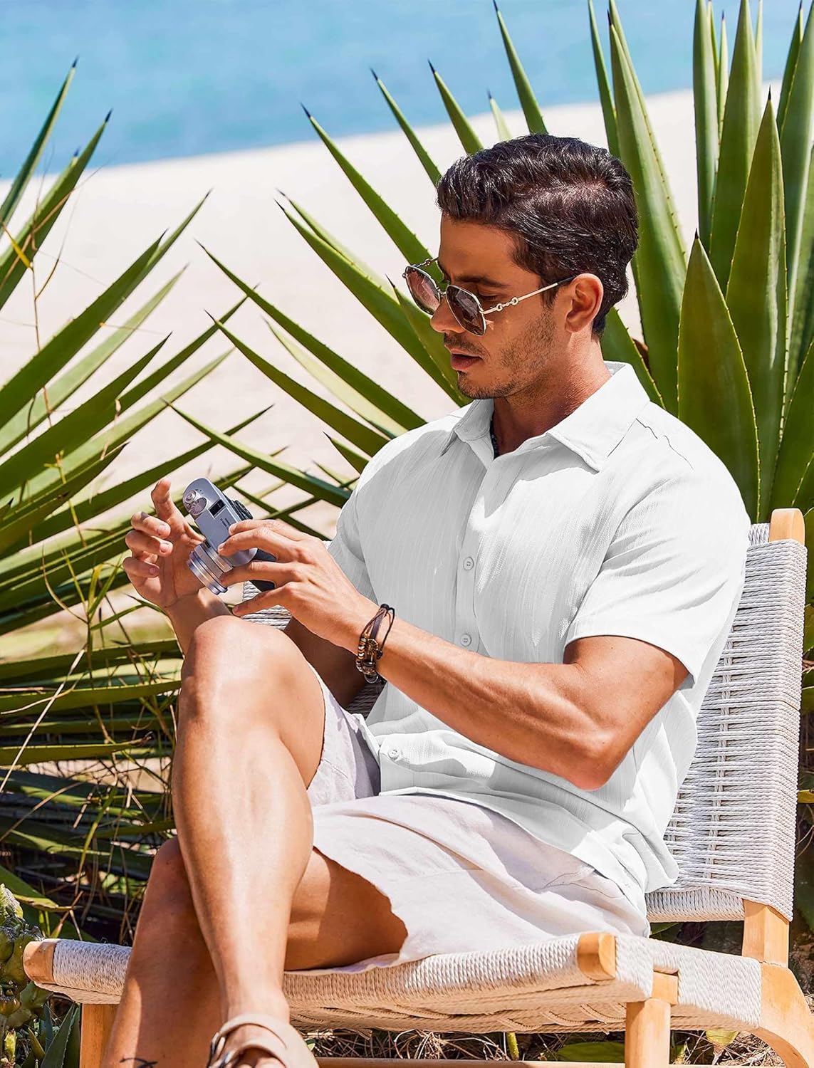 COOFANDY Men’s Casual Button Down Shirts Short Sleeve Textured Summer Beach Shirts