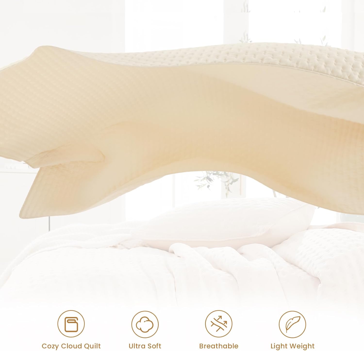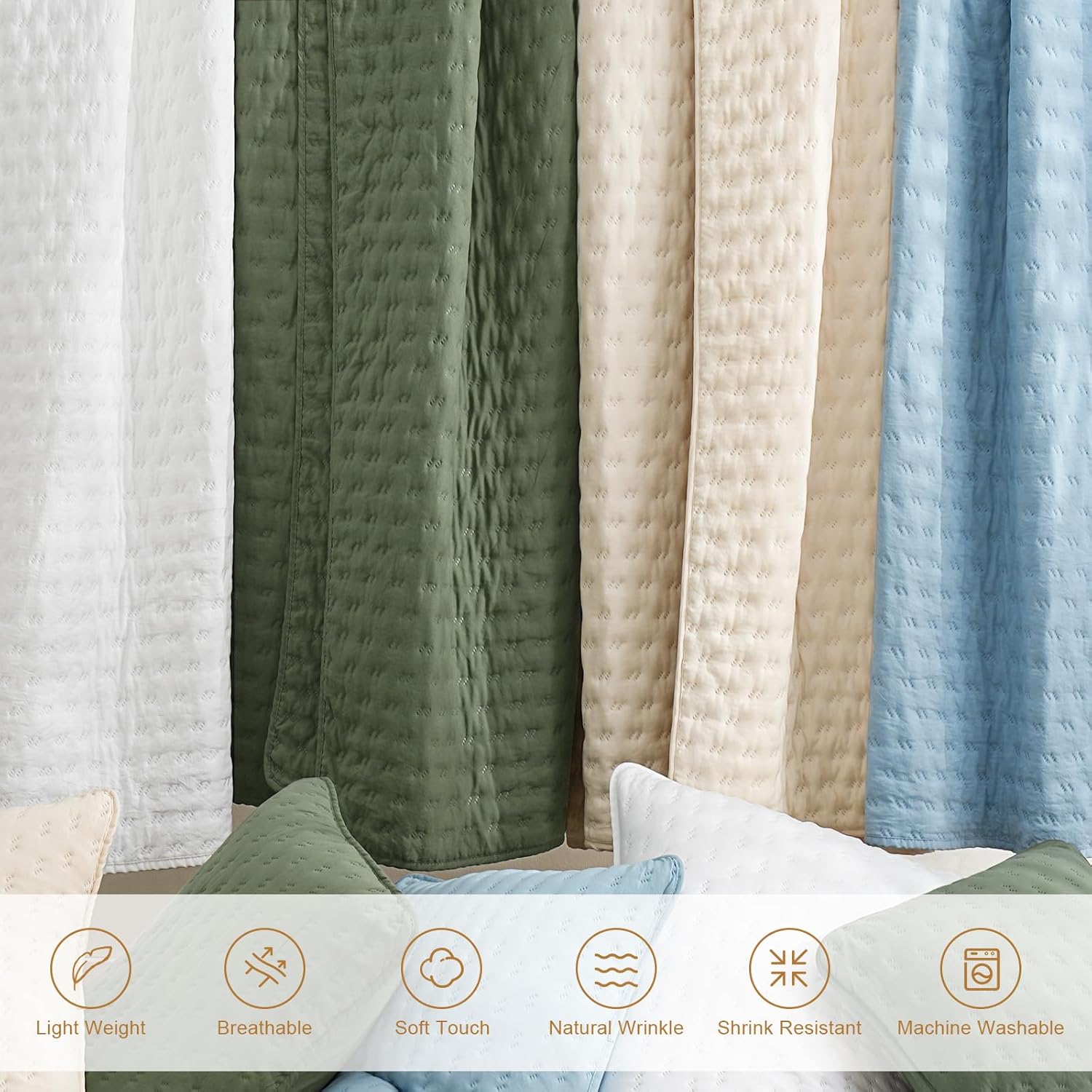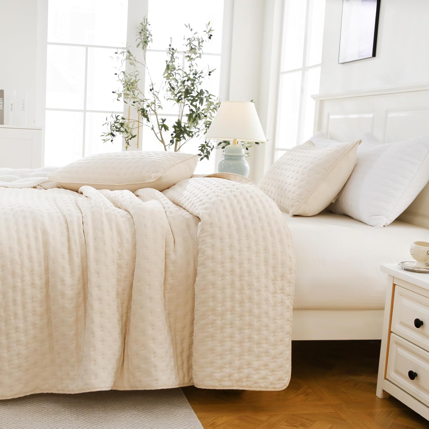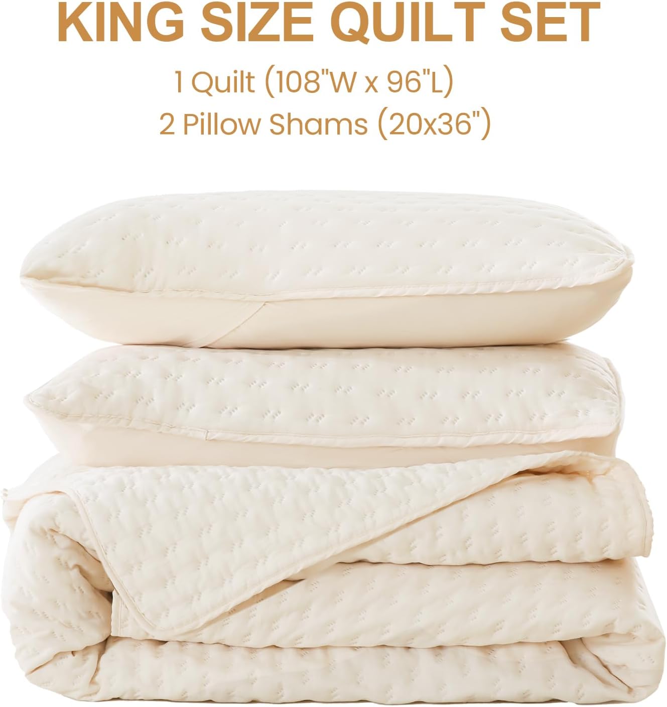 Cream Quilt Bedding Set with Pillow Shams, Breathable Lightweight Bed Spread, Soft Oversized Bedspread Coverlets for King Bed, All Seasons, 3 Pieces, 1 Quilt (108×96), 2 Pillow Shams (20×36)