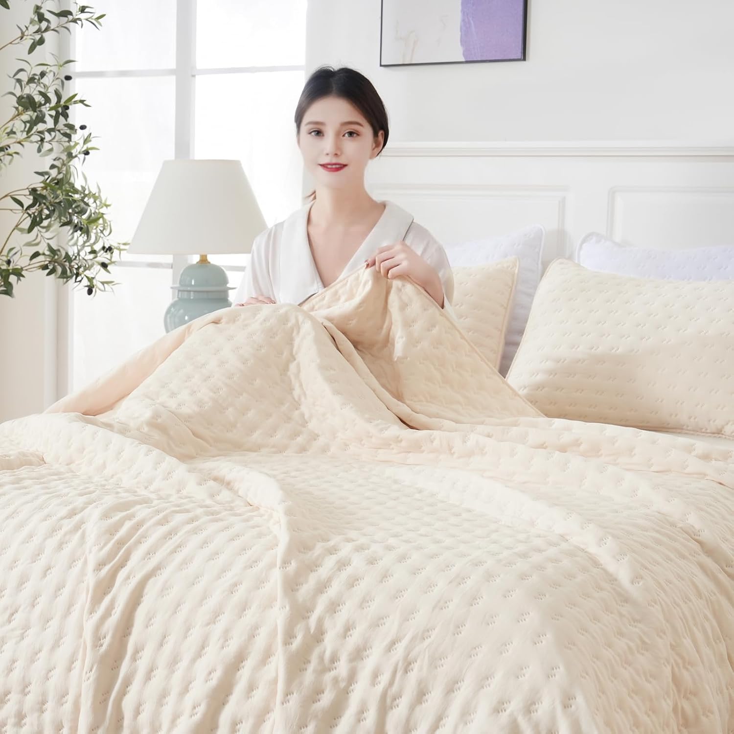 Soft polyester CoverSoft fluffy microfiber fabric fillingNatural wrinkles for better visual feelingALL Seasons Bed Quilts: Soft, Comfortable, BreathableEasy to Care: Machine Washable, Easy to CareSoftness That Lasts: No pilling, No fading, and No Shrinking