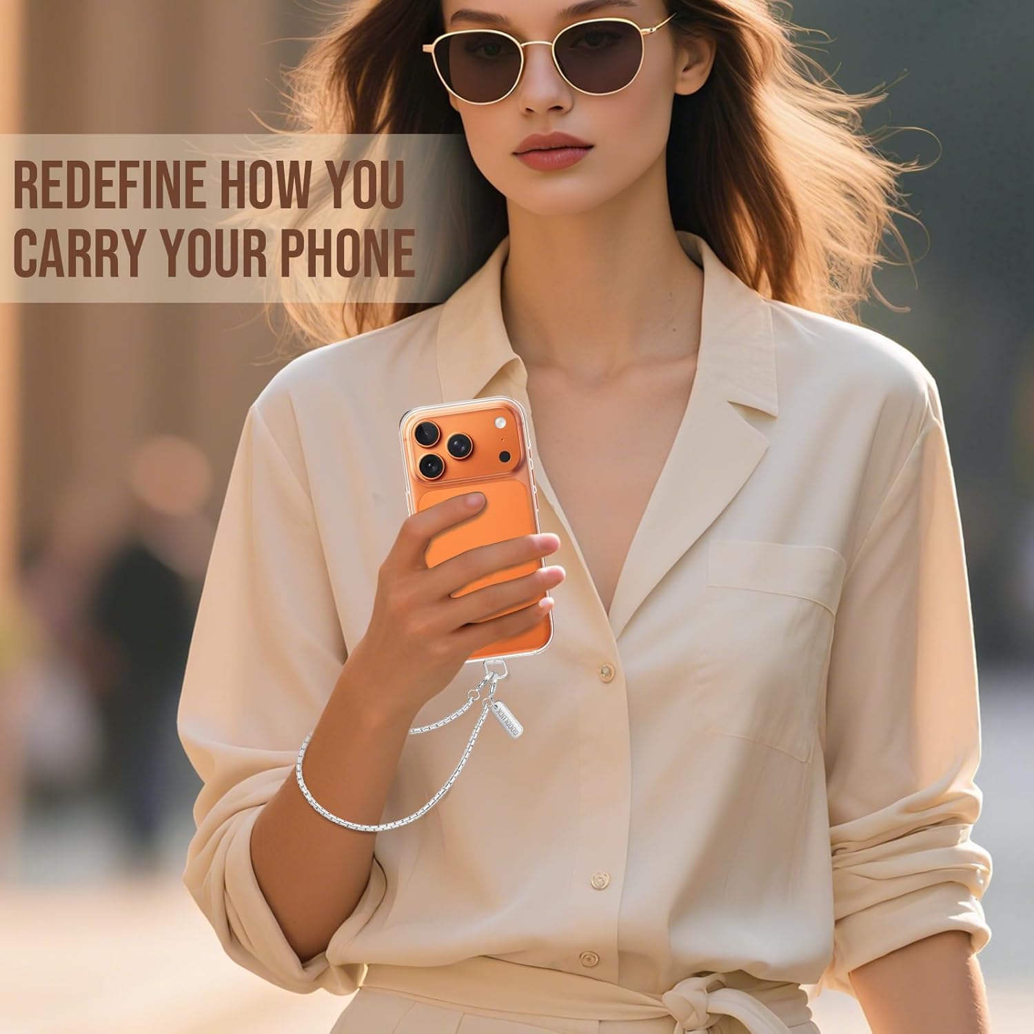 Premium Stainless Steel: Made of stainless steel, our cell phone lanyard is resistant to wear and corrosion. The polished surface gives the phone chain an attractive metallic shine, maintaining its shiny appearance over time. The simple and versatile design easily matches your casual outfits or chic looks, adding a sleek touch to your style.