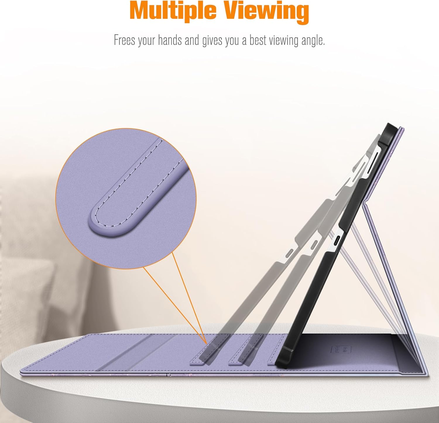 Multiple Viewing Angles: Three anti-slip stripes allow you to adjust the tablet to multiple angles securely. Built-in magnetic strip provides sleep / wake feature