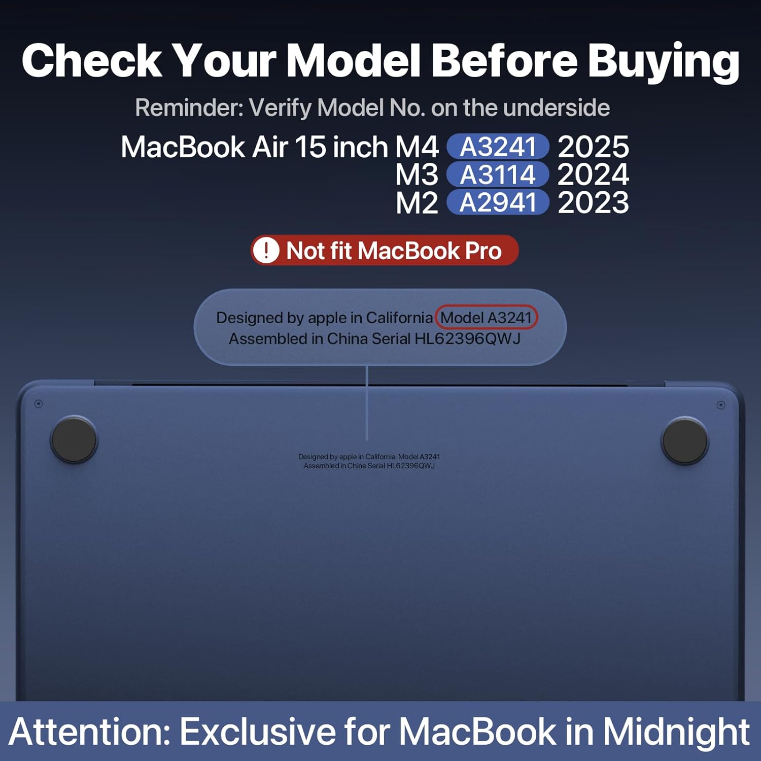【Check Your Mode】ONLY compatible with MacBook Air 15 inch 2025 2024 2023 Release M4 M3 M2 Chip (Model A3241/A3114/A2941). Pls verify Model No. the underside of MacBook before buying