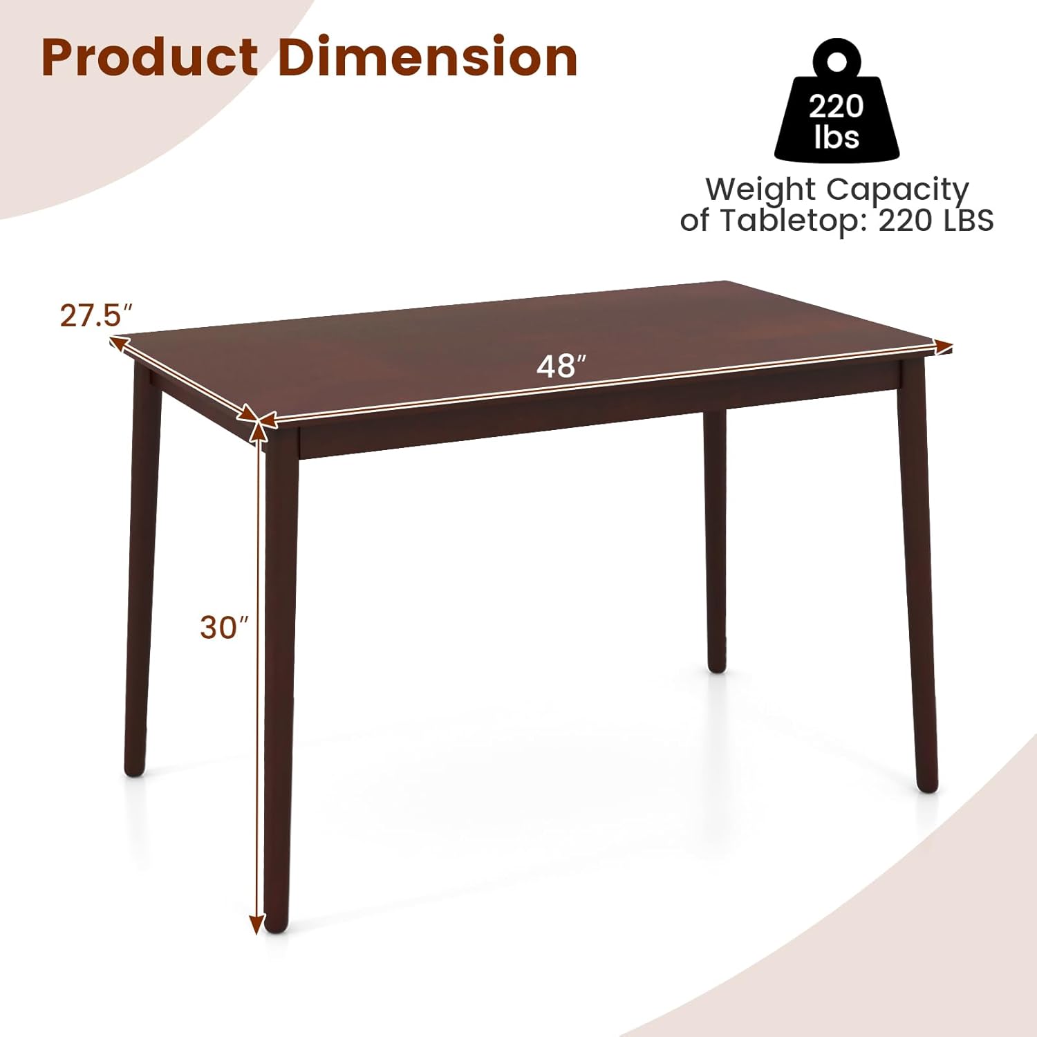 Giantex Dining Table for 4, Rectangular Kitchen Table, Mid Century Modern Dining Table with Rubber Wood Legs, 48 Inch Dinette Table for Kitchen, Dining Room, Living Room, Apartment, Brown