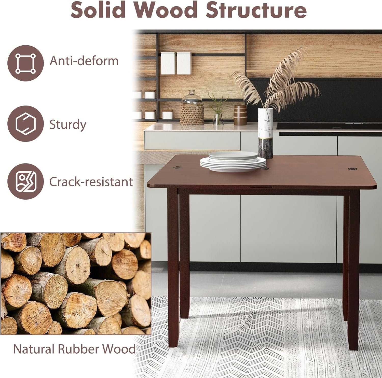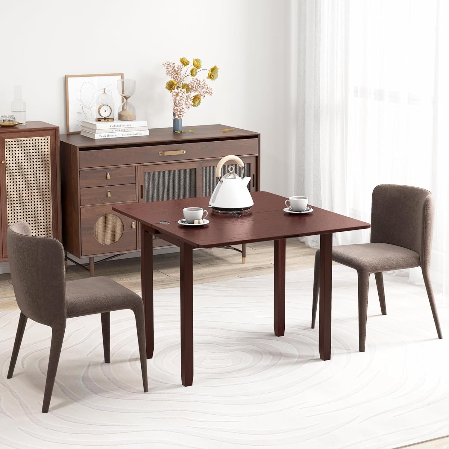 Elegant Style Feasts Your Eyes: Featuring cherry brown finish, the dining room table will enhance the ambiance of dining room, kitchen, small apartment. Besides, the delicate wood veneer further enhances visual appeal, while ensuring easy maintenance. With detailed instruction, the folding dining table is easy to setup.