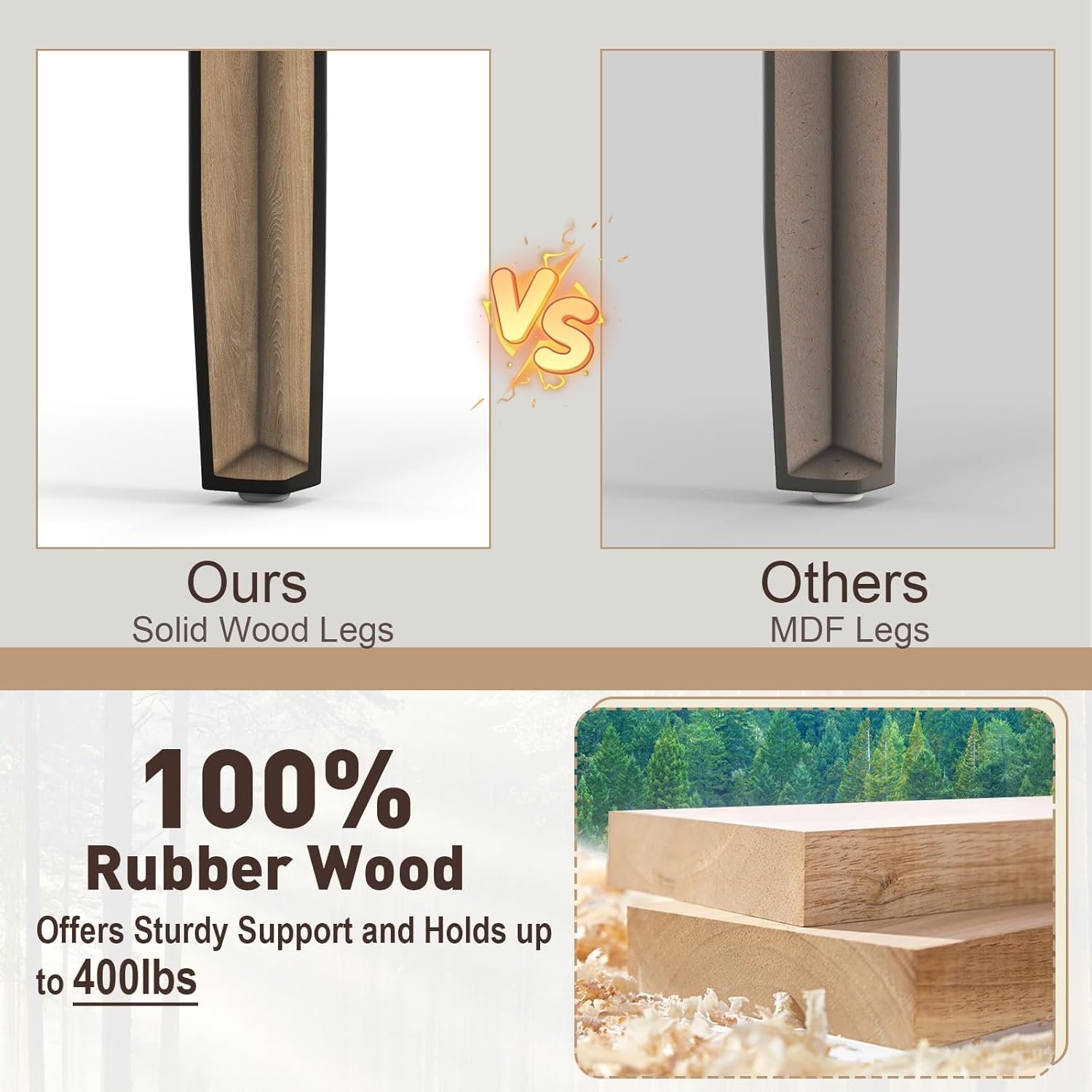 [Solid Rubber Wood]: All legs are made of high quality rubber wood that is natural and sturdy. As a result, each chair has a strong load capacity of 400 lbs. Moreover, exquisite workmanship brings a smooth and bur free surface and you can sit on the chair at ease.