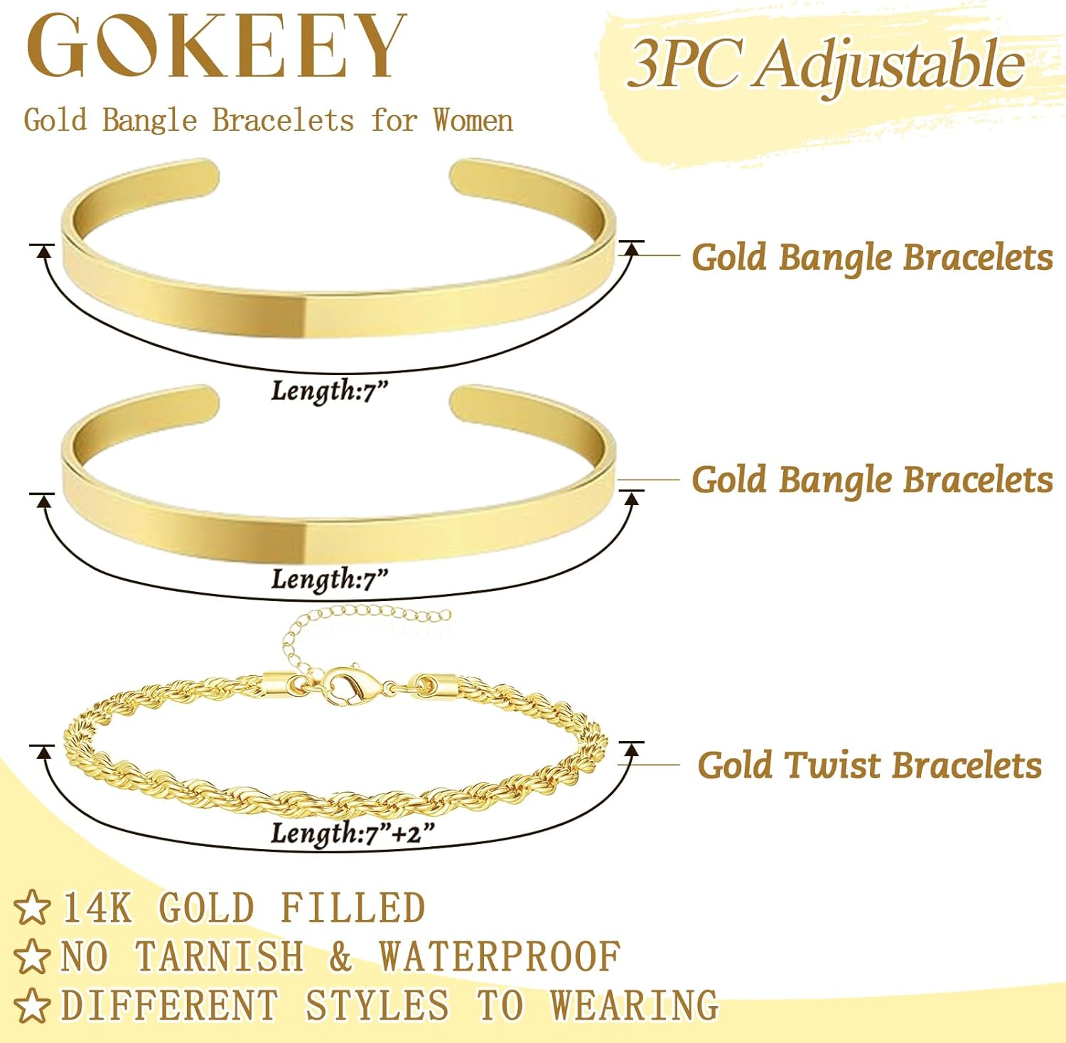 Gold Bracelets for Women Non Tarnish Dainty 14K Gold Plated Bangle Cuff Bracelets Stack for Women,Waterproof Stackable Bracelet Gold Jewelry Trendy Gifts Adjustable