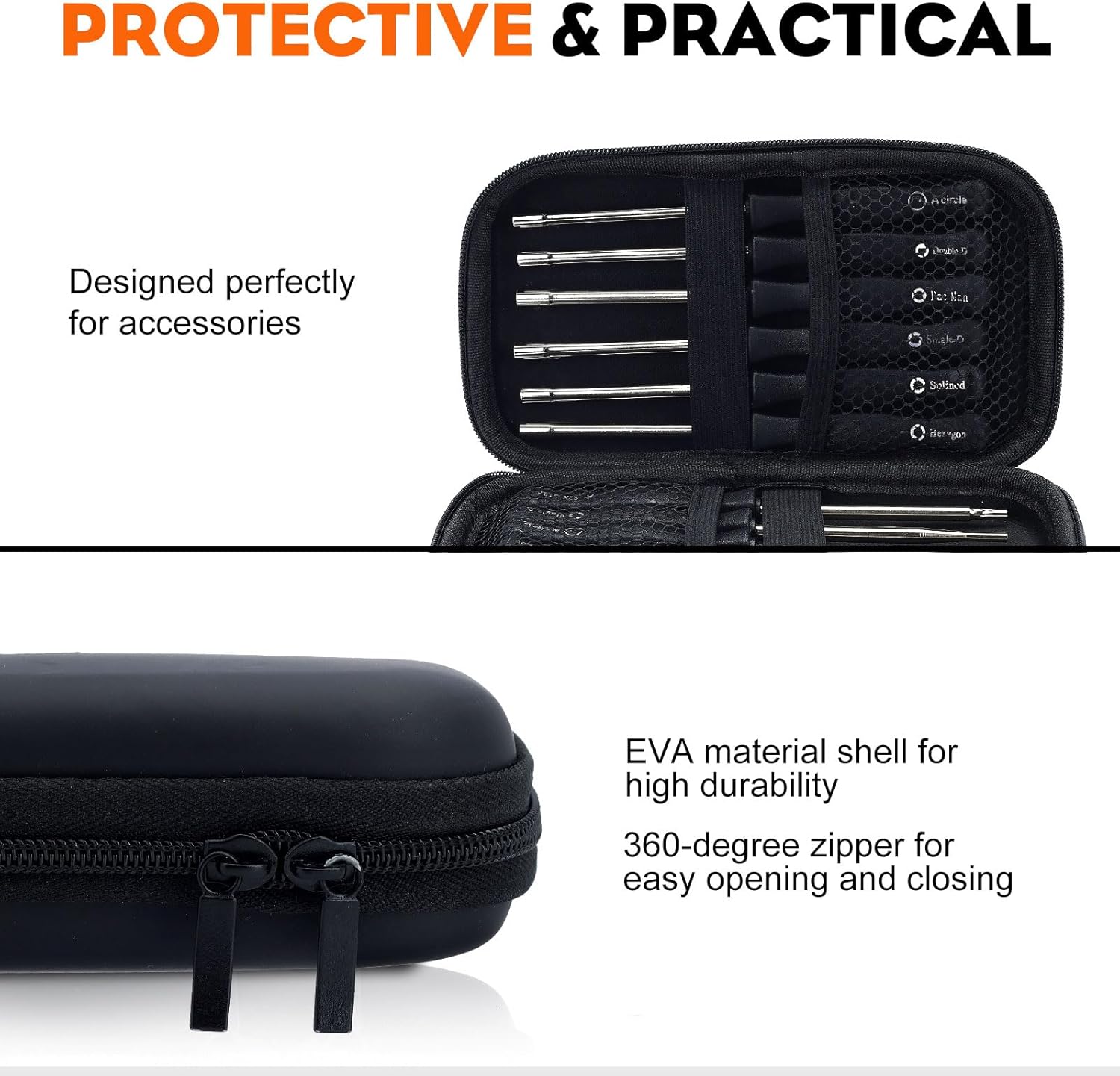 [PORTABLE STORAGE]: Organize and Carry. Equipped with a durable EVA material toolkit to protect tools, making it easy to carry—from your backyard to remote locations deep in the forest. It features built-in mesh lining and elastic bands to secure all parts in place, preventing them from falling out or getting lost.