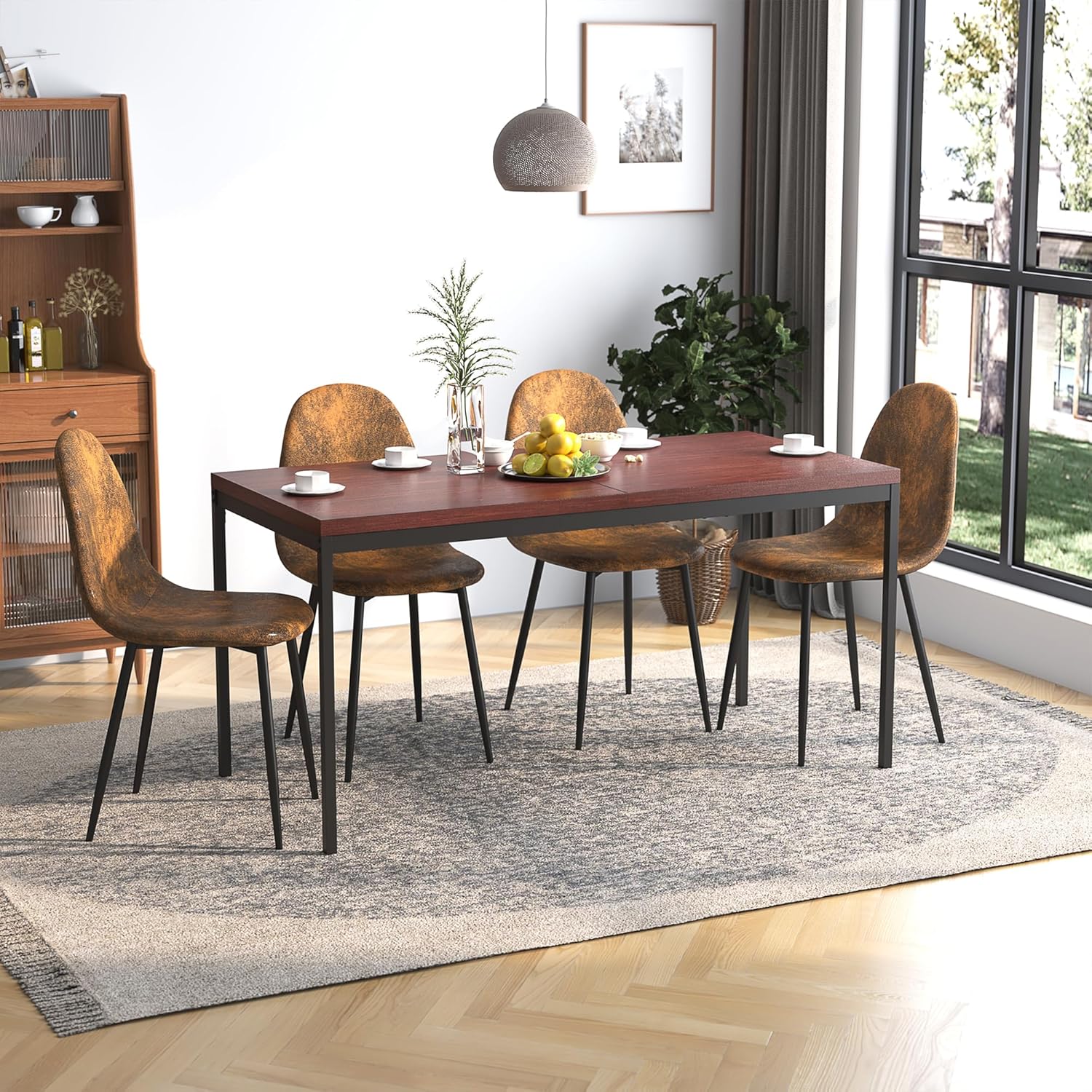 Homy Casa Mid-Century Modern Armless Dining Chairs Set, Upholstered with Fabric Suede, Metal Legs, Perfect for Kitchen, Dining Room, Living or Restaurant, Brown