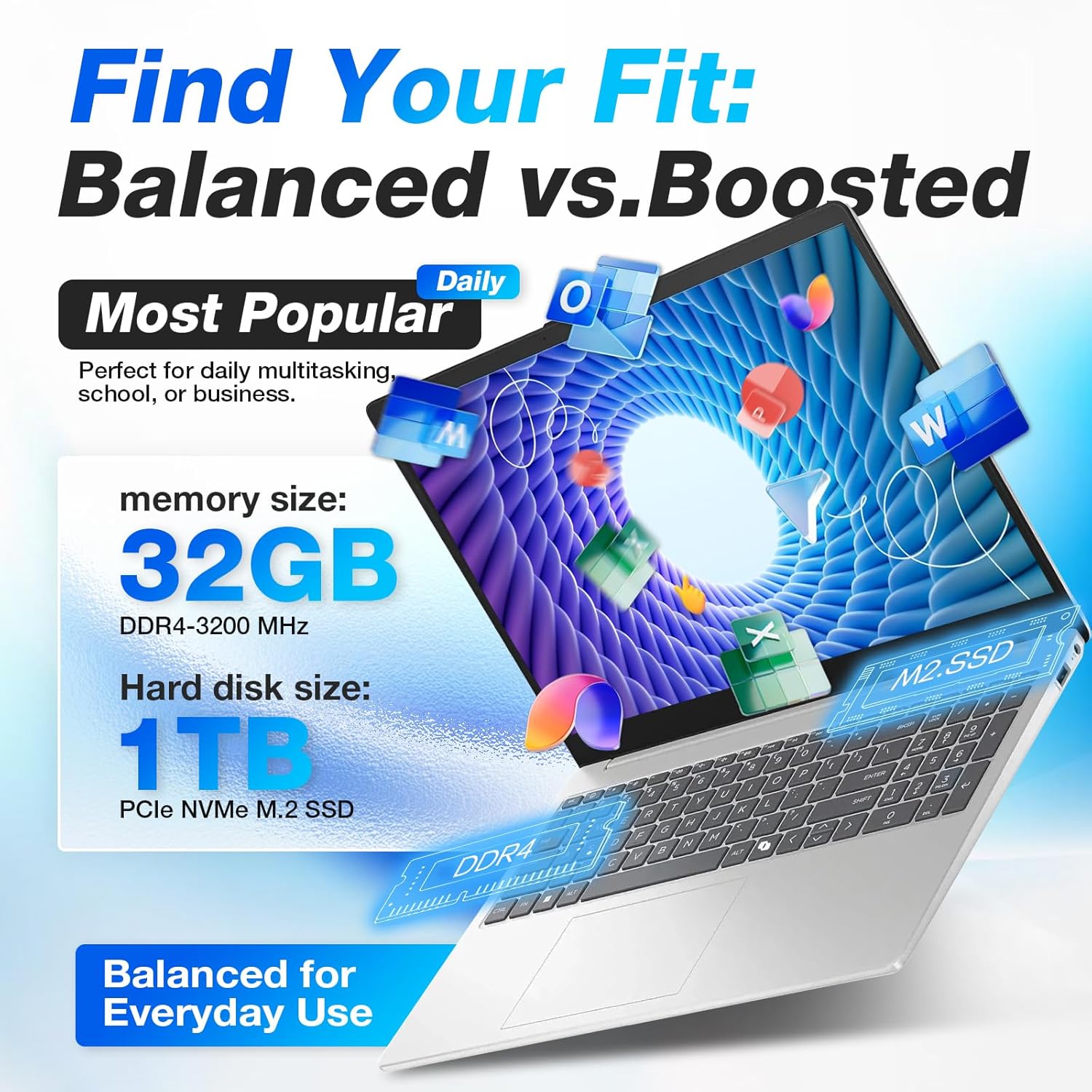 ➤【BALANCED SPEED & STORAGE FOR DAILY TASKS】Powered by 32GB RAM and 1TB SSD, this model ensures smooth multitasking and fast file access—ideal for schoolwork, content viewing, and daily productivity.