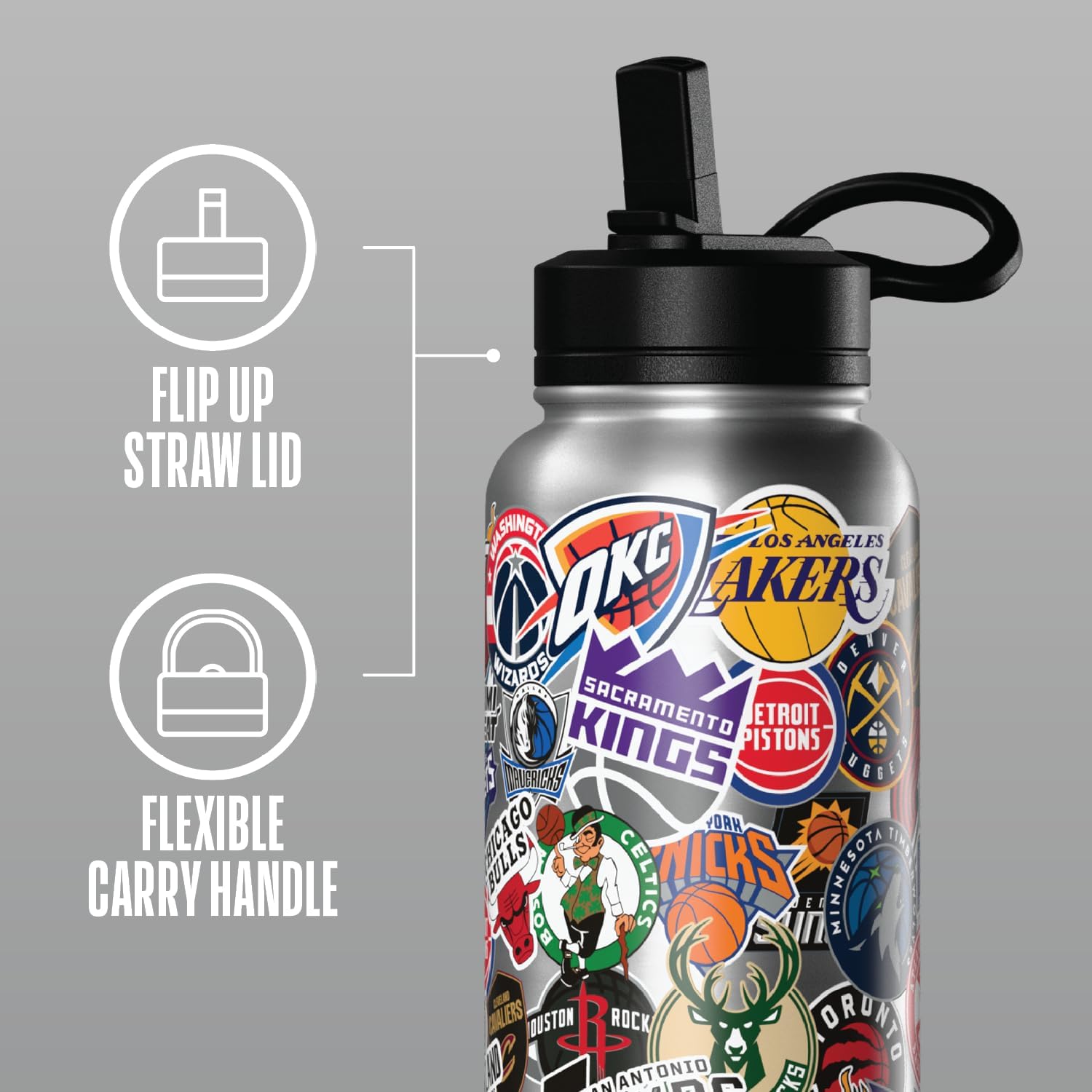 Hydrapeak x NBA Officially Licensed All Team Sticker Print 32 oz Insulated Water Bottle with Straw Lid and Handle (NBA Current, 32 Ounces)