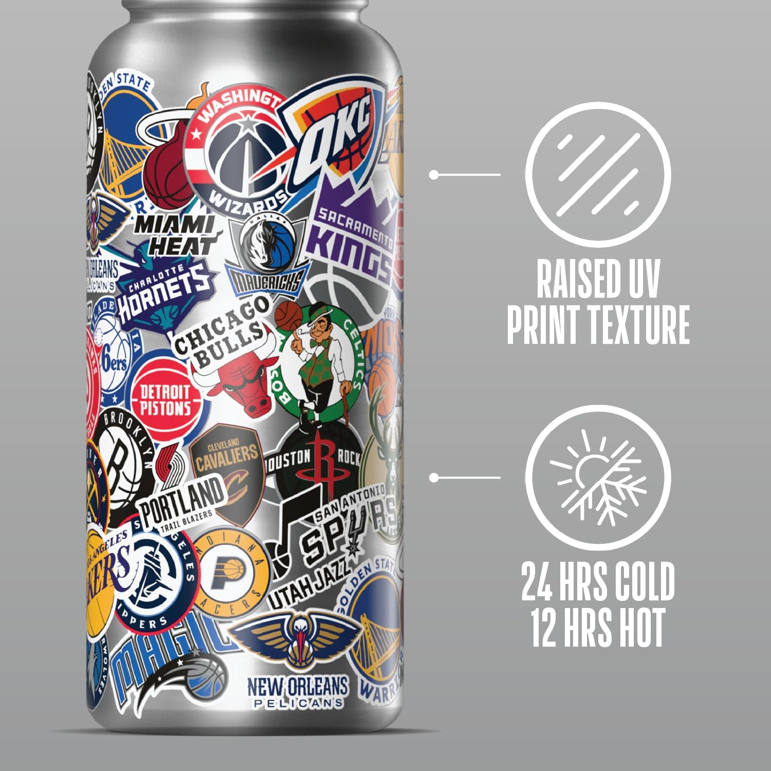OFFICIAL NBA LICENSED DESIGN – Show off your love for the NBA with this 32 oz officially licensed NBA insulated water bottle featuring all 30 NBA team logos in a vibrant, sticker-like design. Perfect for any basketball fan!