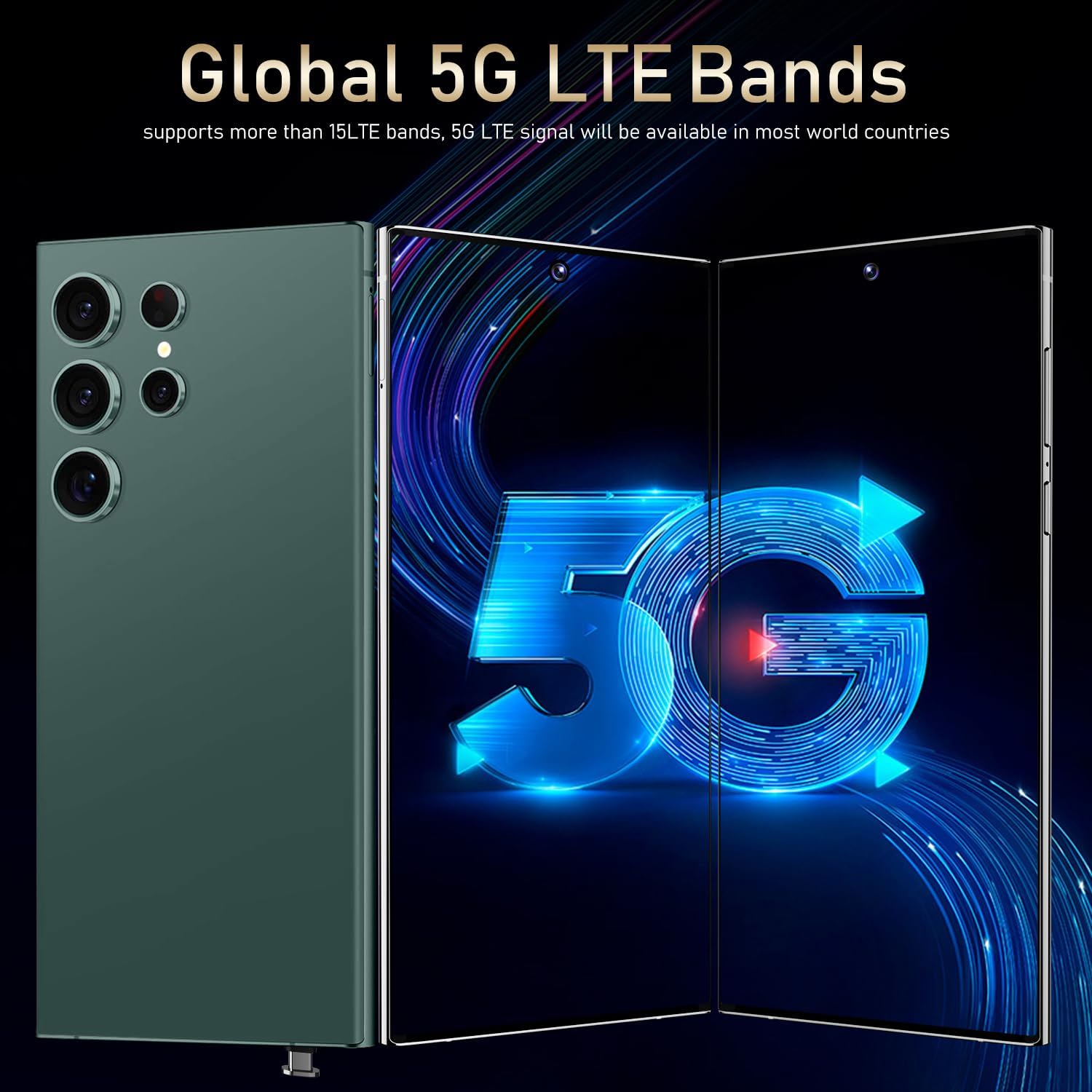 【Dual SIM/TF card holder sharing and Global Band 5G Phone】Dual SIM & 2 Card Slots, I24 Ultra Smartphone adopts 2 card slot design (SIM/TF card holder sharing), supports two 5G SIM cards, you can use the second number without carrying an extra mobile phone. Excellent transmission speed allows you to freely explore the online world.