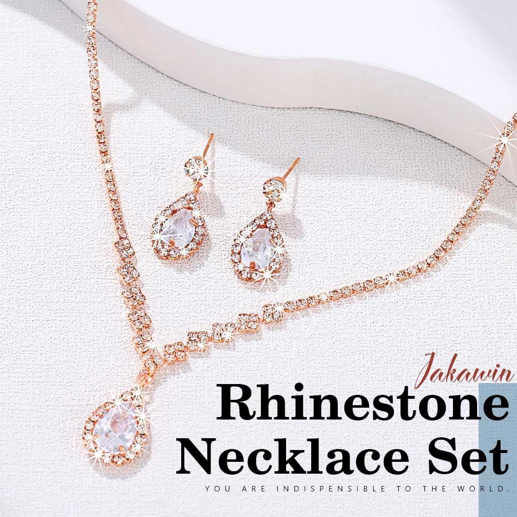 JAKAWIN Bride Silver Bridal Necklace Earrings Set Crystal Wedding Jewelry Set Rhinestone Choker Necklace for Women (Set of 3) (NK144-3)